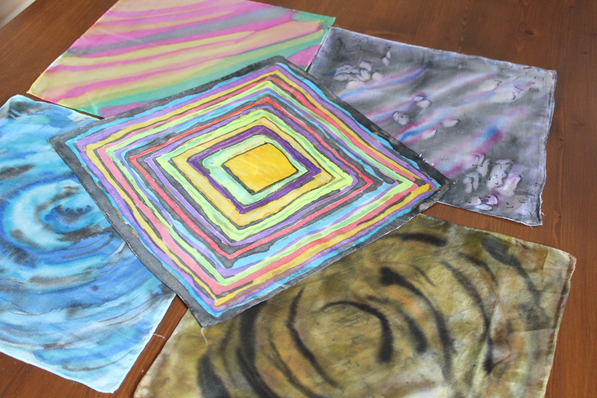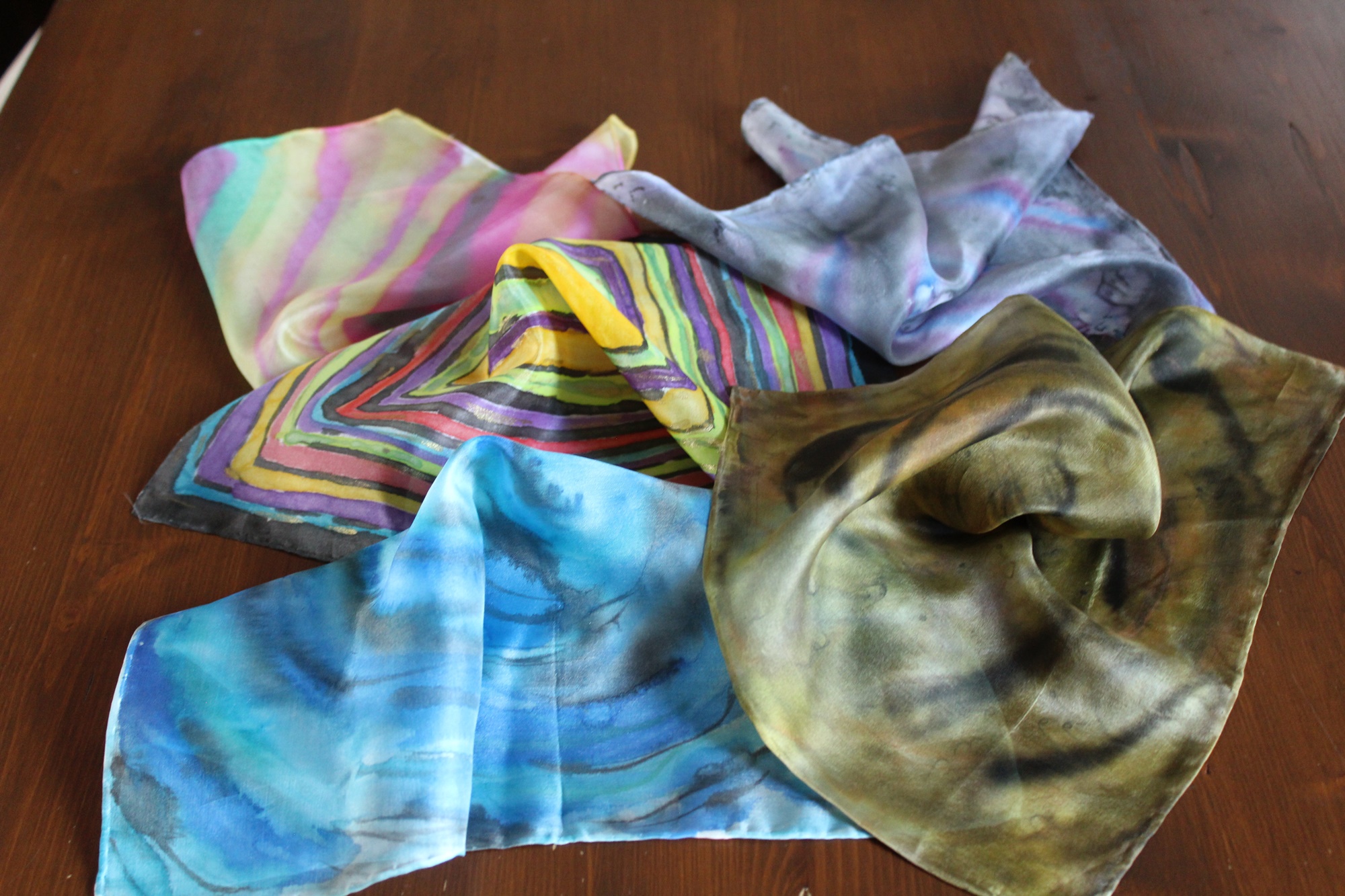 Jedes Seidentuch ist mit Seidenmalfarbe bemalt, fixiert und vorgewaschen, damit kein überschüssiger Farbrest dem Seidentuch anhaftet. Es ist waschbar bei 30°C. Ich würde Handwäsche empfehlen. Feucht bügeln.