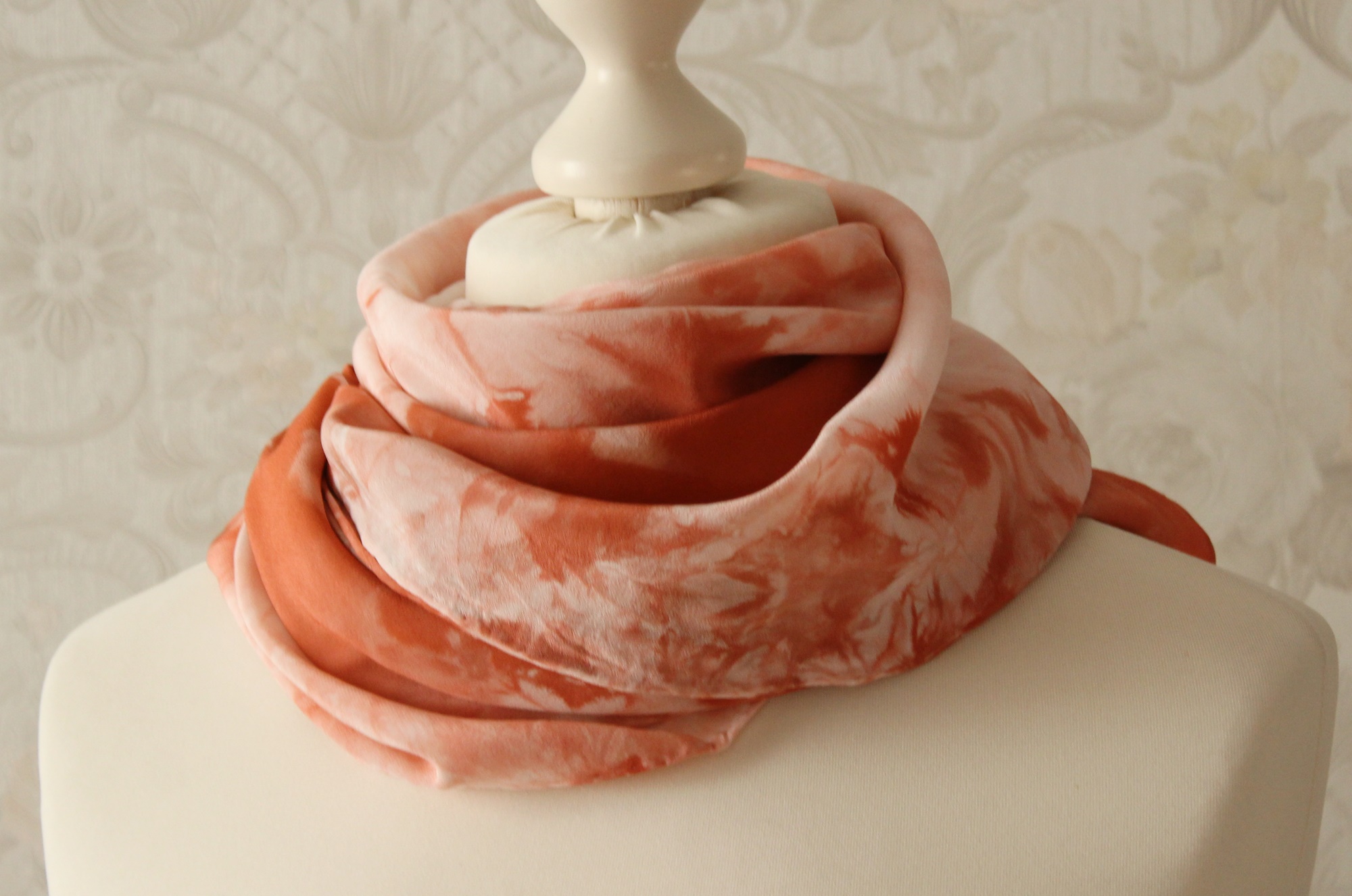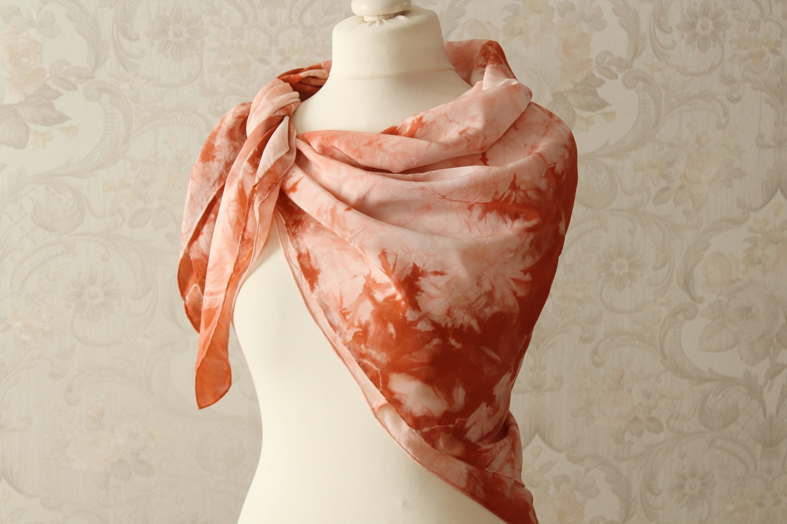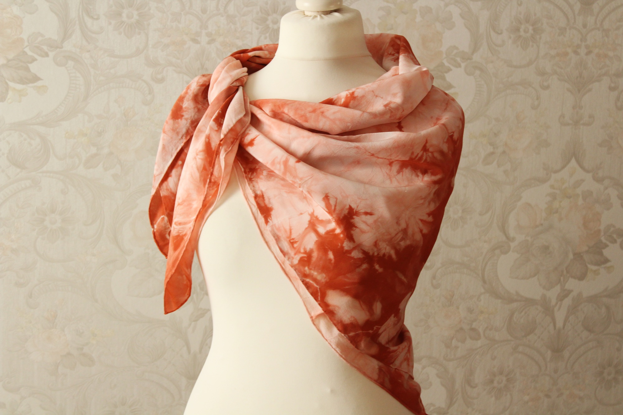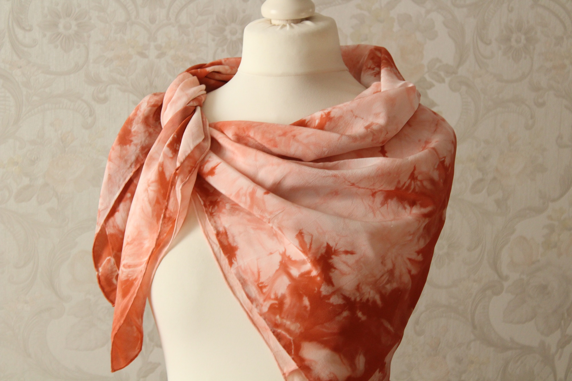 Das braune große Tuch aus Seide ist in Handarbeit gefertigt und ein weiteres Stück der Melodie Reihe. Wie wenn sich bei einer Melodie laute und leise Töne abwechseln, sind es hier helle und dunklere Farben. Die Muster aus interessanten Farbverläufen entstehen durch verschiedenen Techniken der Seidenmalerei.