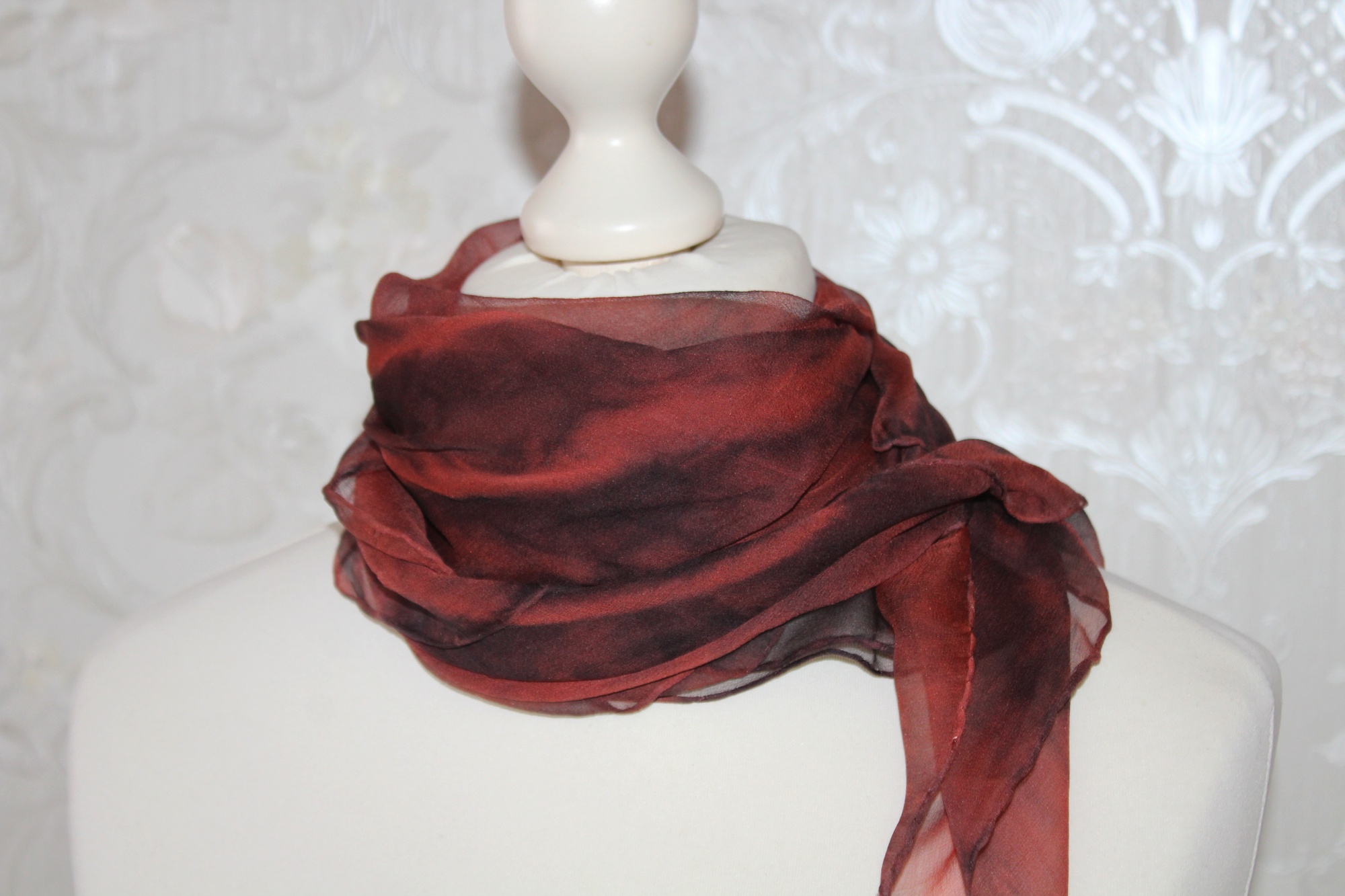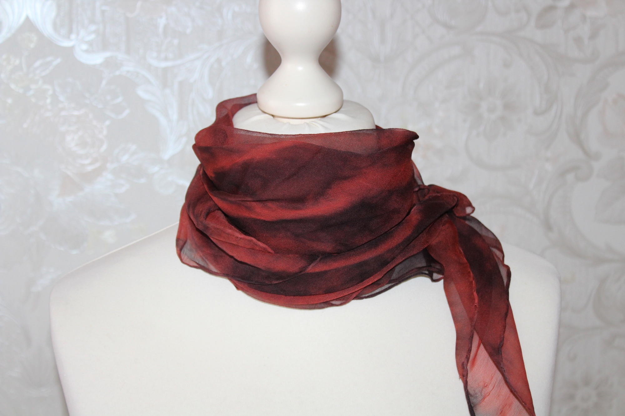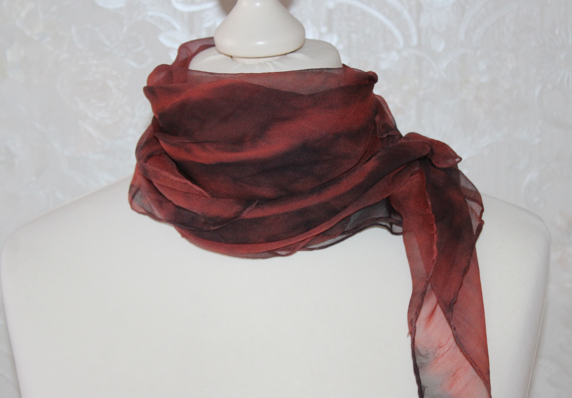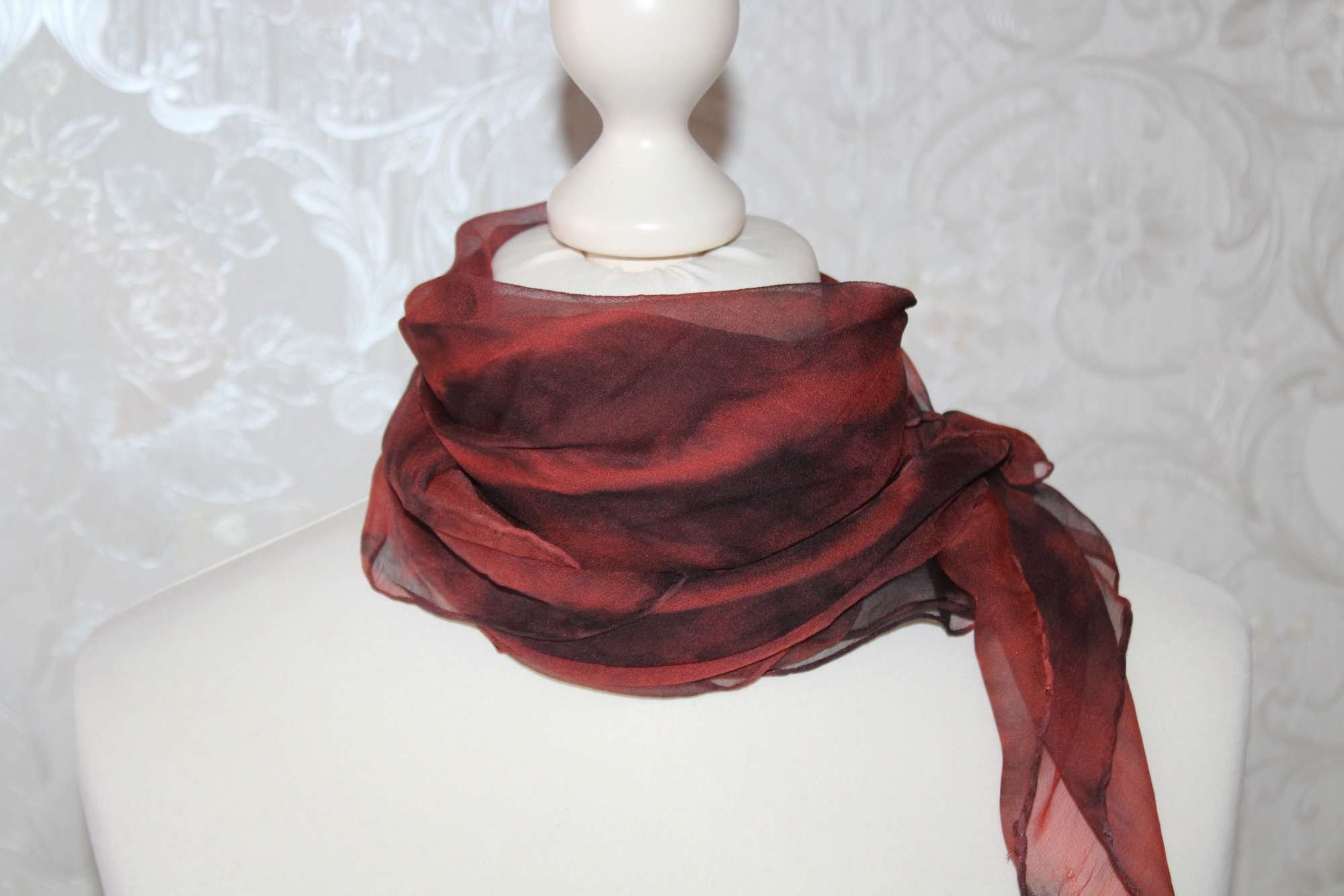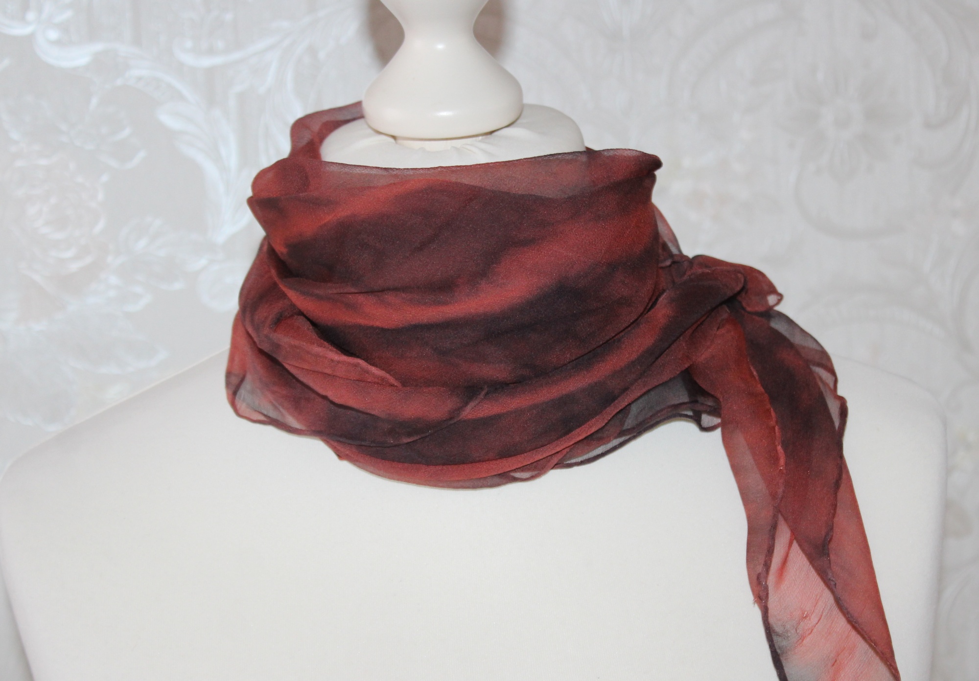 Ein Tuch aus Chiffon / Seidenchiffon in verschiedenen braunen bis weinroten Farbtönen, Handarbeit aus Germany.
