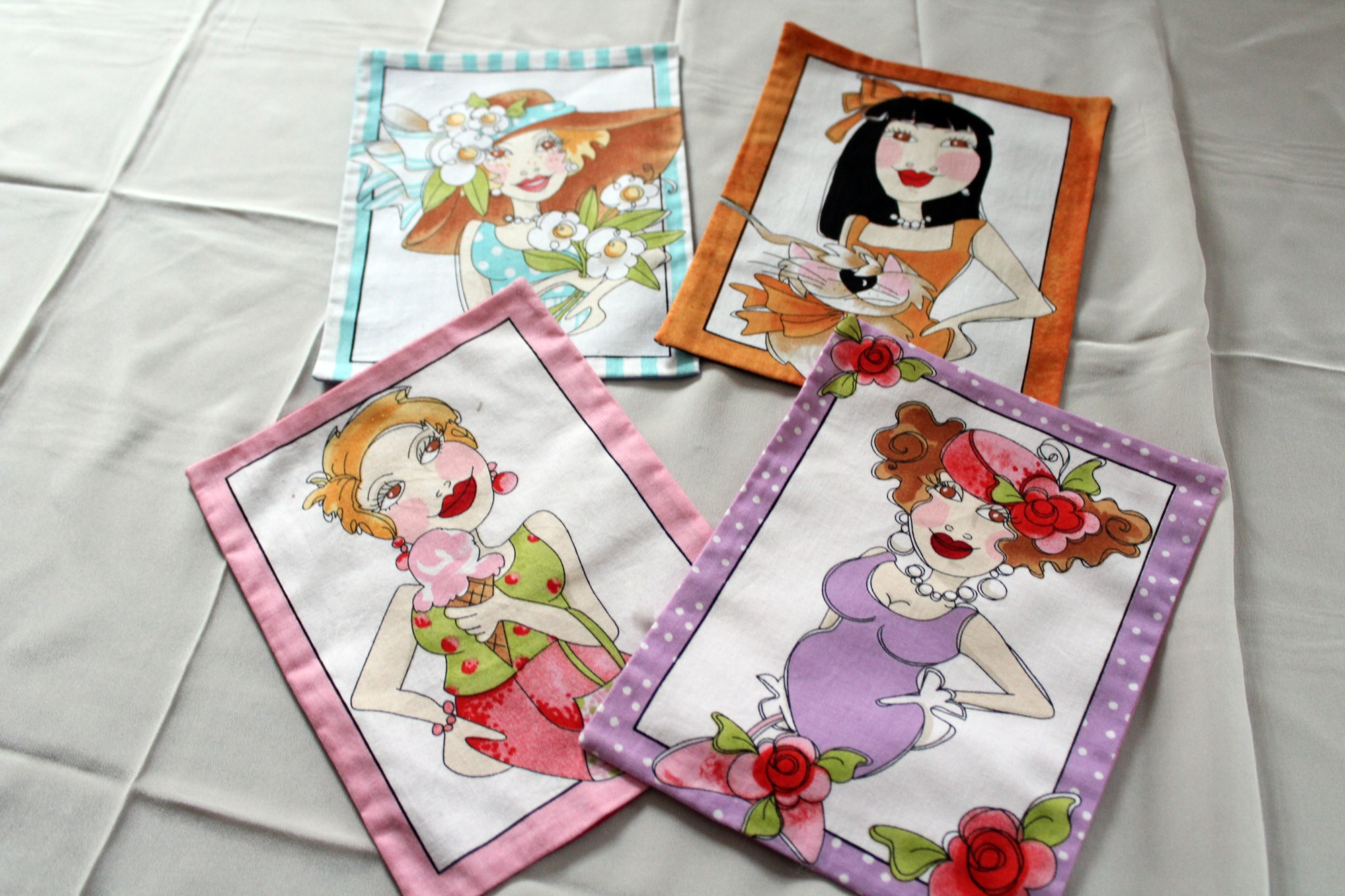 4 Stück Kissenhüllen zum Befüllen. Jedes Kissen ist ca. 14 x 18 cm groß. Sie sind aus Baumwollstoff genäht. Vorn haben sie ein Bildmotiv, hinten sind sie einfarbig. Unten haben wir ca. 2 cm aufgelassen. So können sie unkompliziert gefüllt werden. Wenn man Füllwatte hineinstopft hat man ein Kuschelkissen oder Dekokissen. Gibt man getrocknete Blüten o.ä.dazu ein Duftkissen, befüllt man es mit Kirschkernen oder Dinkel hat mein ein Wärmekissen. So können Sie ganz individuell entscheiden für welchen Zweck sie es fertigstellen möchten.