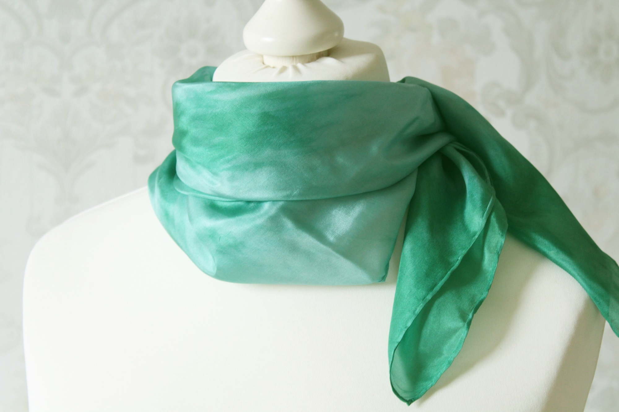 Das kleine Seidentuch ist verschieden grünen Farbtönen gearbeitet. Es passt zu vielen Outfits und ist ein Basic Tuch für alle Anlässe. Auch als Geschenk ist es bestens geeignet.