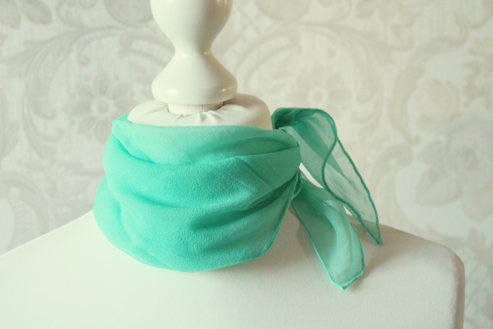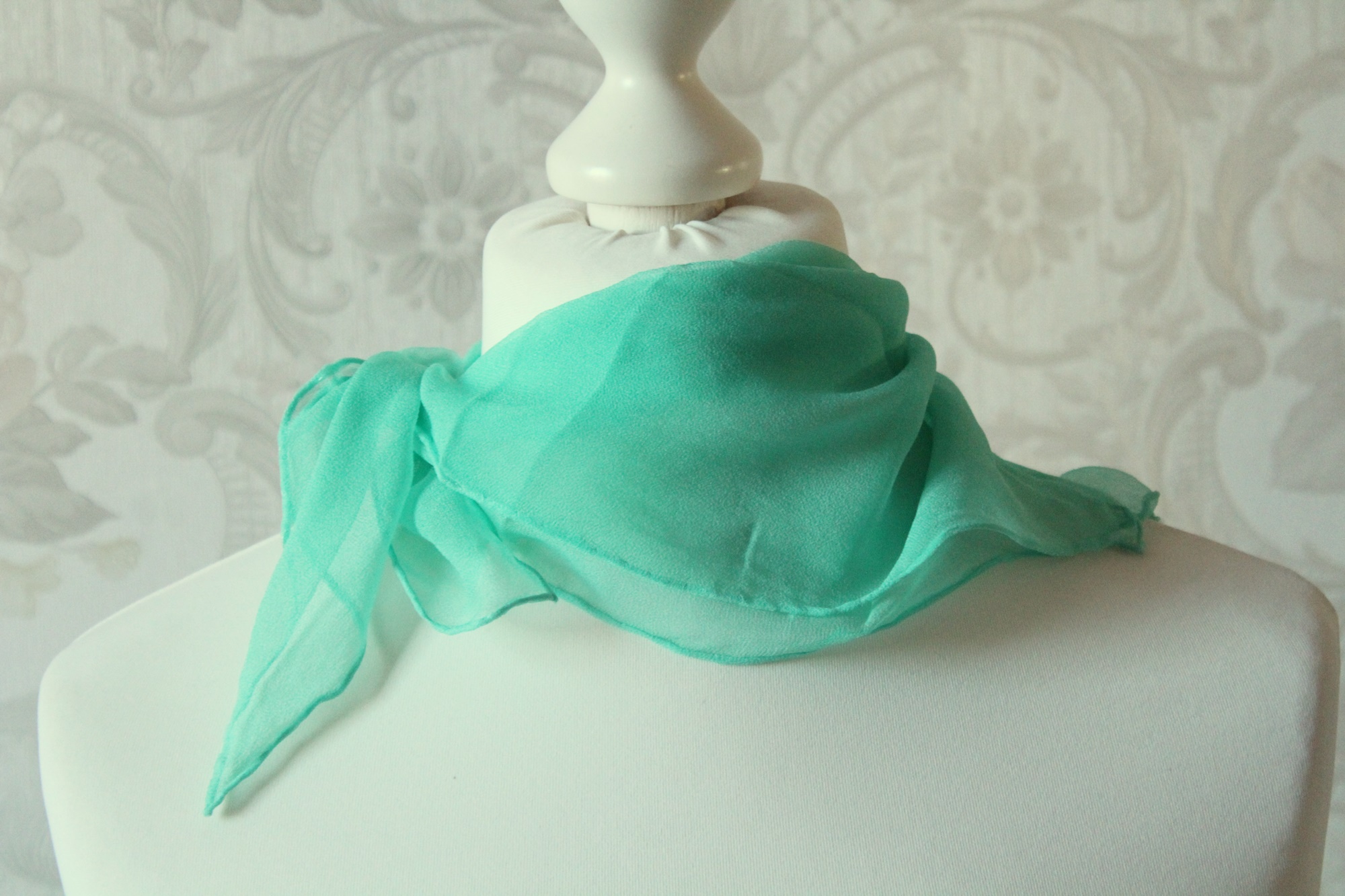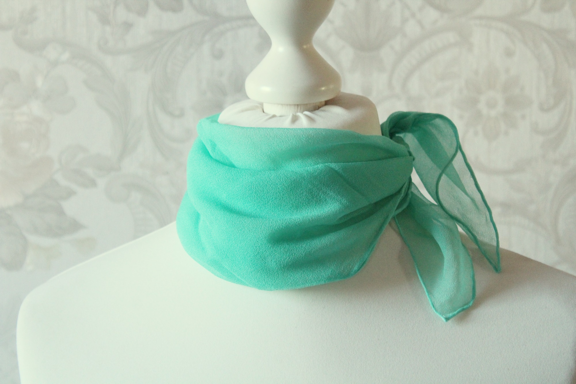 Kleines Seidentuch aus Seidenchiffon von Hand coloriert in der Farbe Grün. Das Grün ist ein frisches Lindgrün. Die freundliche Farbe zeichnet dieses kleine Seidentuch aus, es ist einfarbig und ohne Muster. Das Seidentuch ist ca. 50 cm groß und wird somit als Nickituch getragen. Aufgrund der Größe ist das Tuch auch für kleine Mädchen geeignet. Es ist also auch ein Kindertuch.