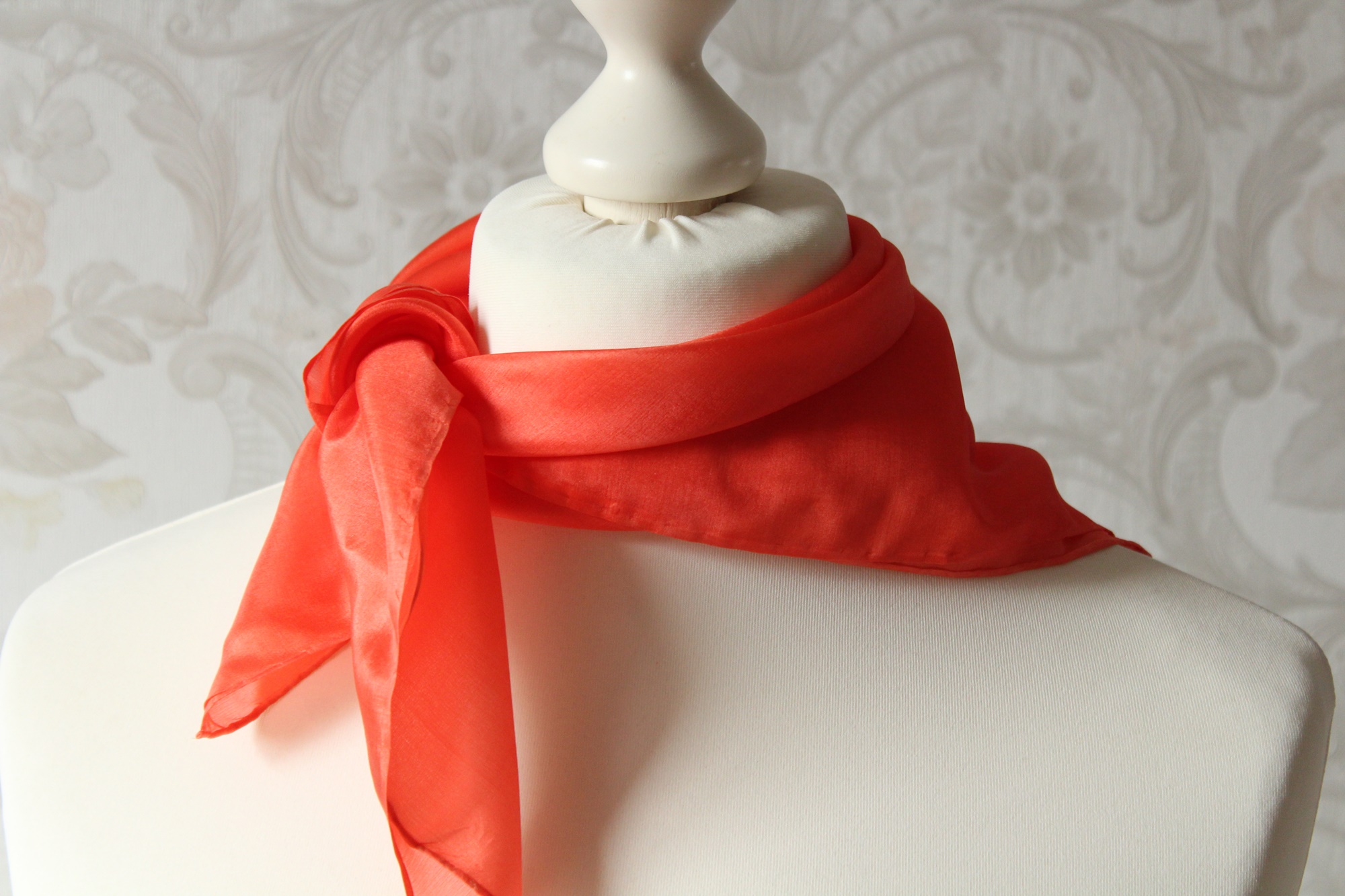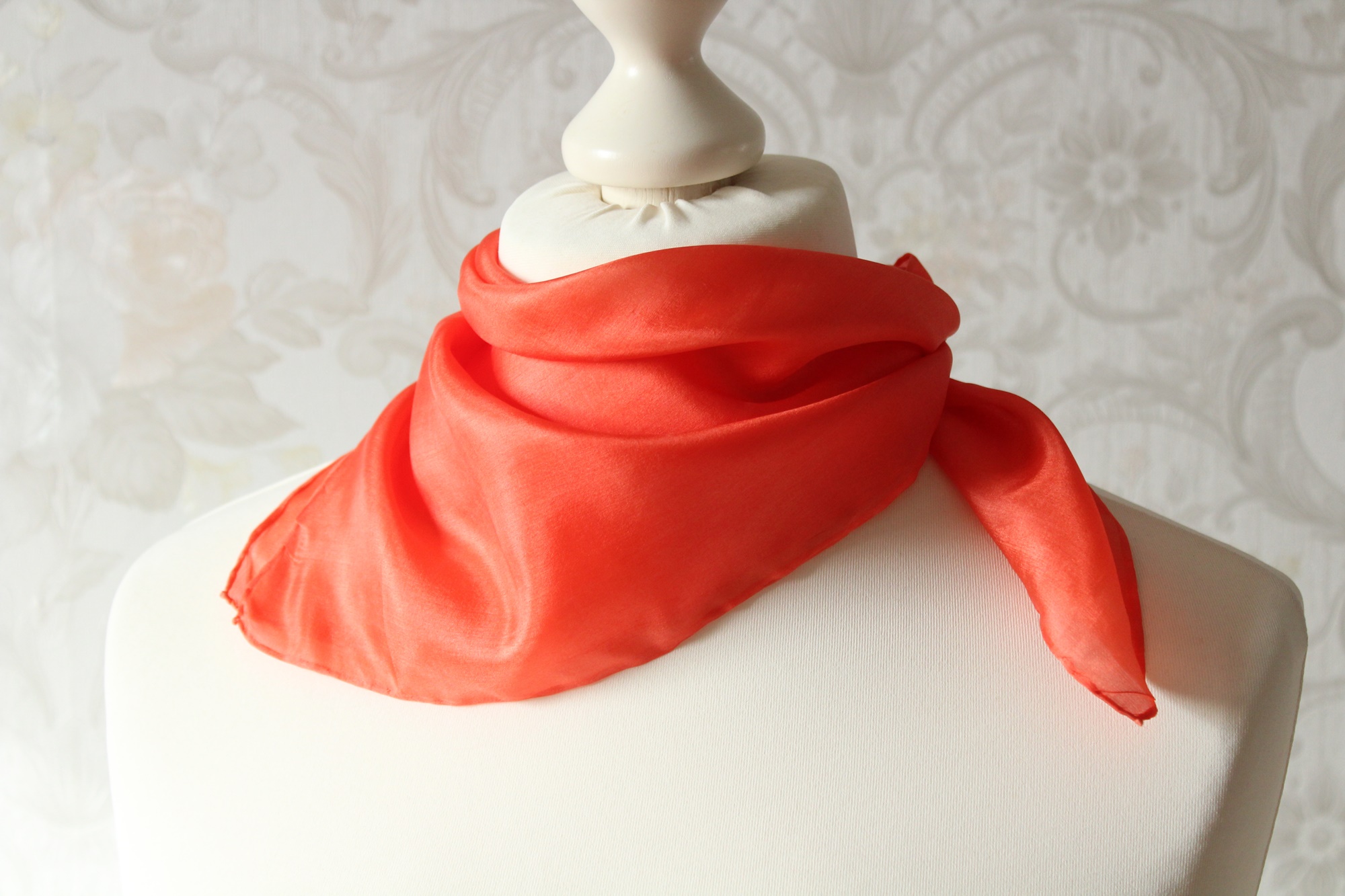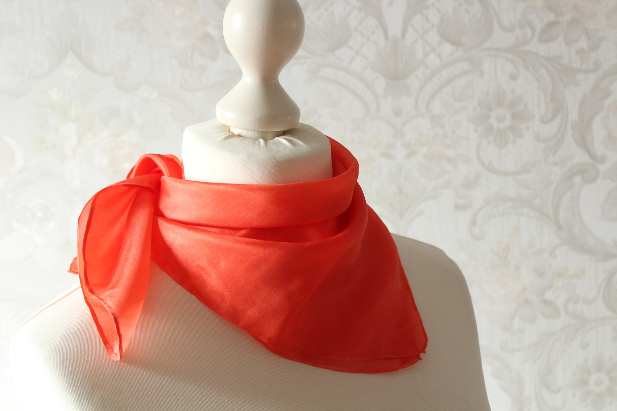 Lachs Orange ist die Farbe von diesem handcolorierten Tuch aus Seide. Das Seidentuch kann man als Nickituch tragen. Aber auch für Kinder hat das kleine Tuch die richtige Größe. Das Nickytuch oder Kindertuch ist ca. 55 x 55 cm groß.