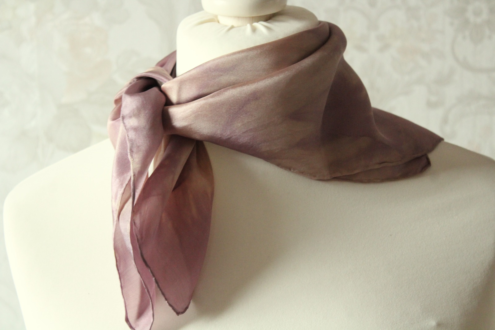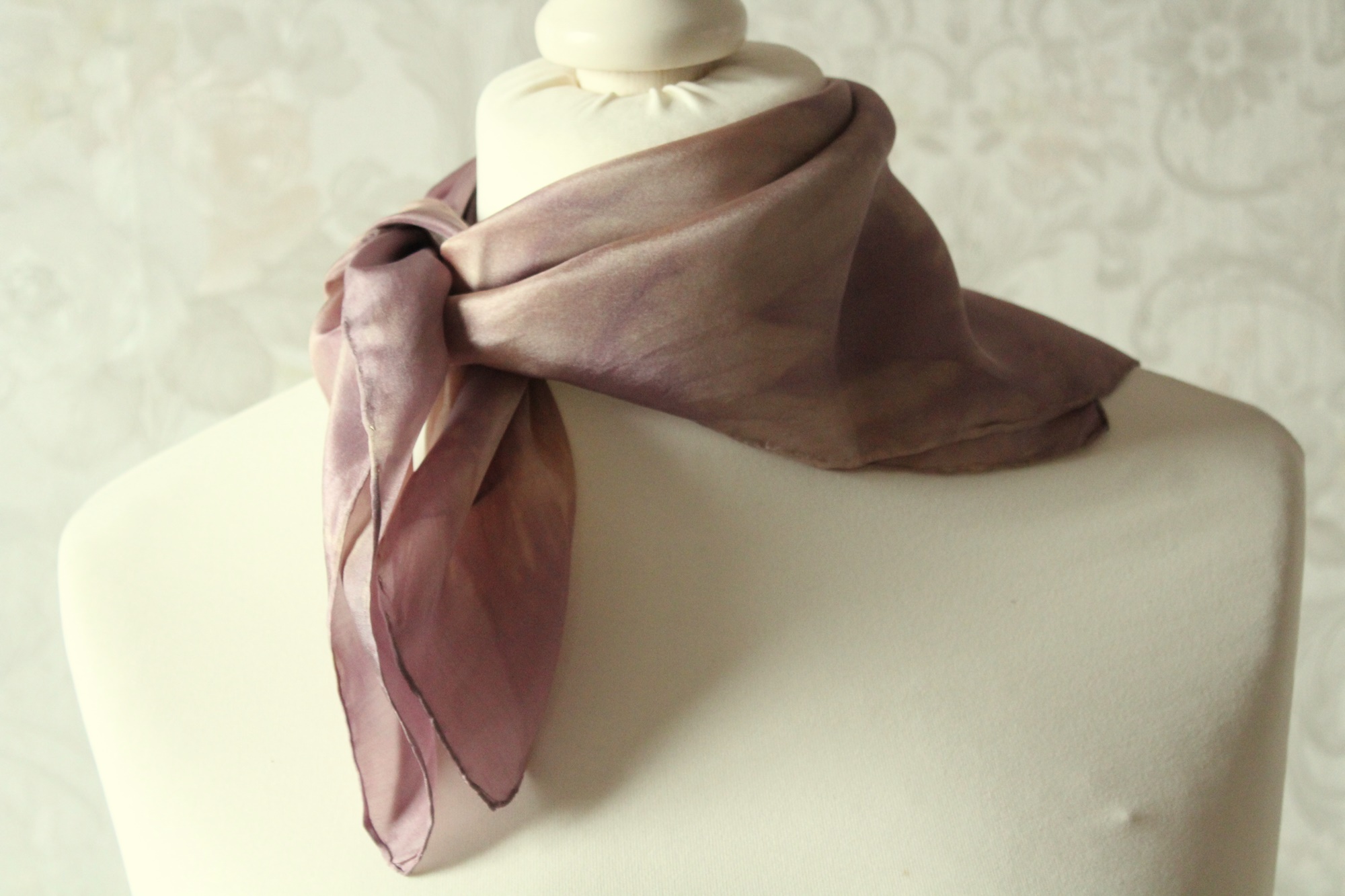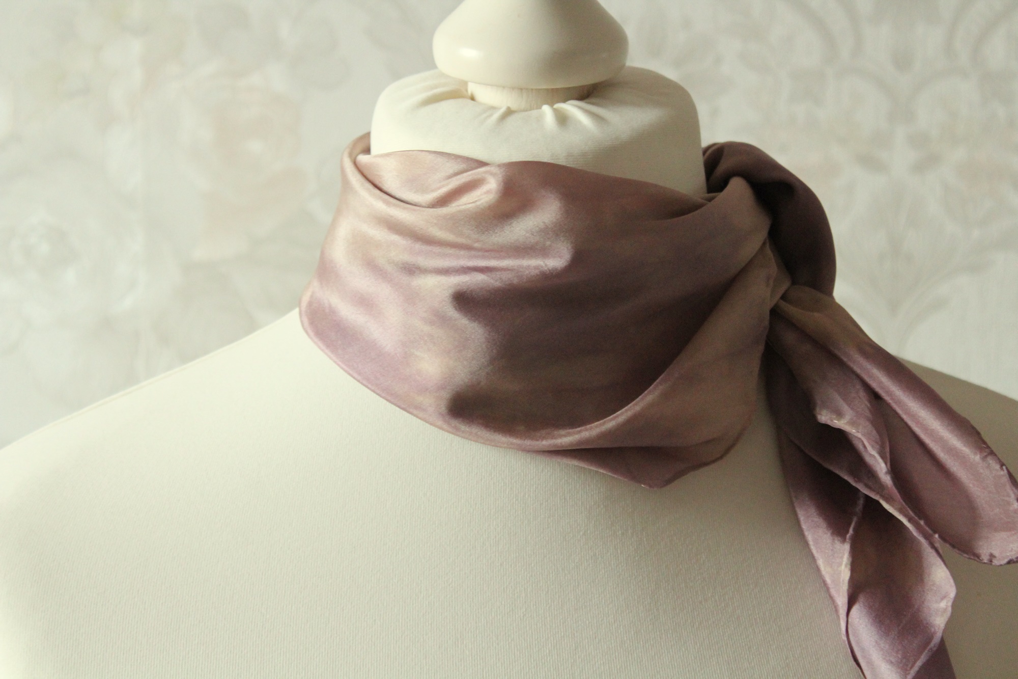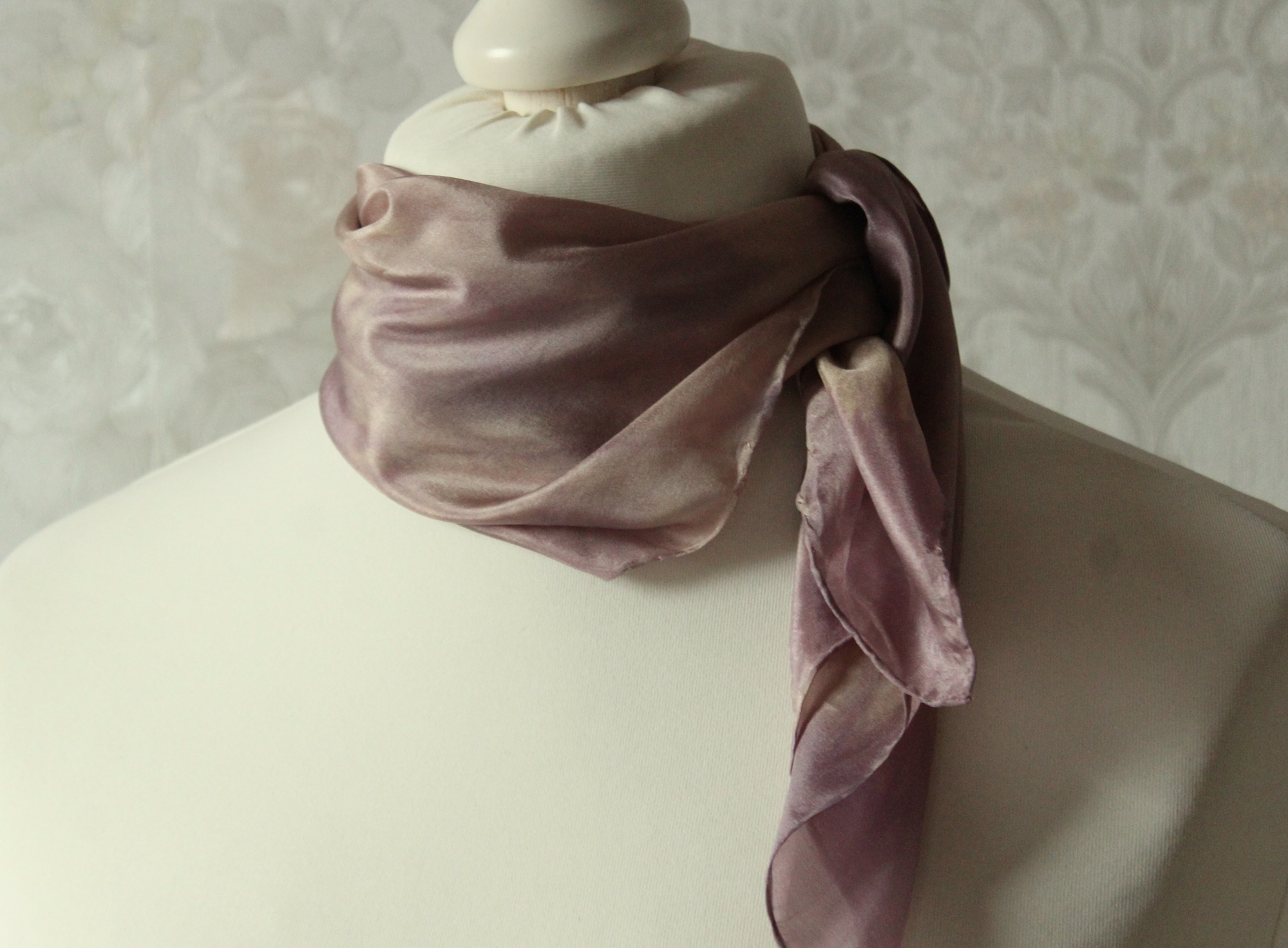 Kleines Tuch, ein Seidentuch aus der Reihe Farbgeflüster in Beige und Lila Farbtönen.
