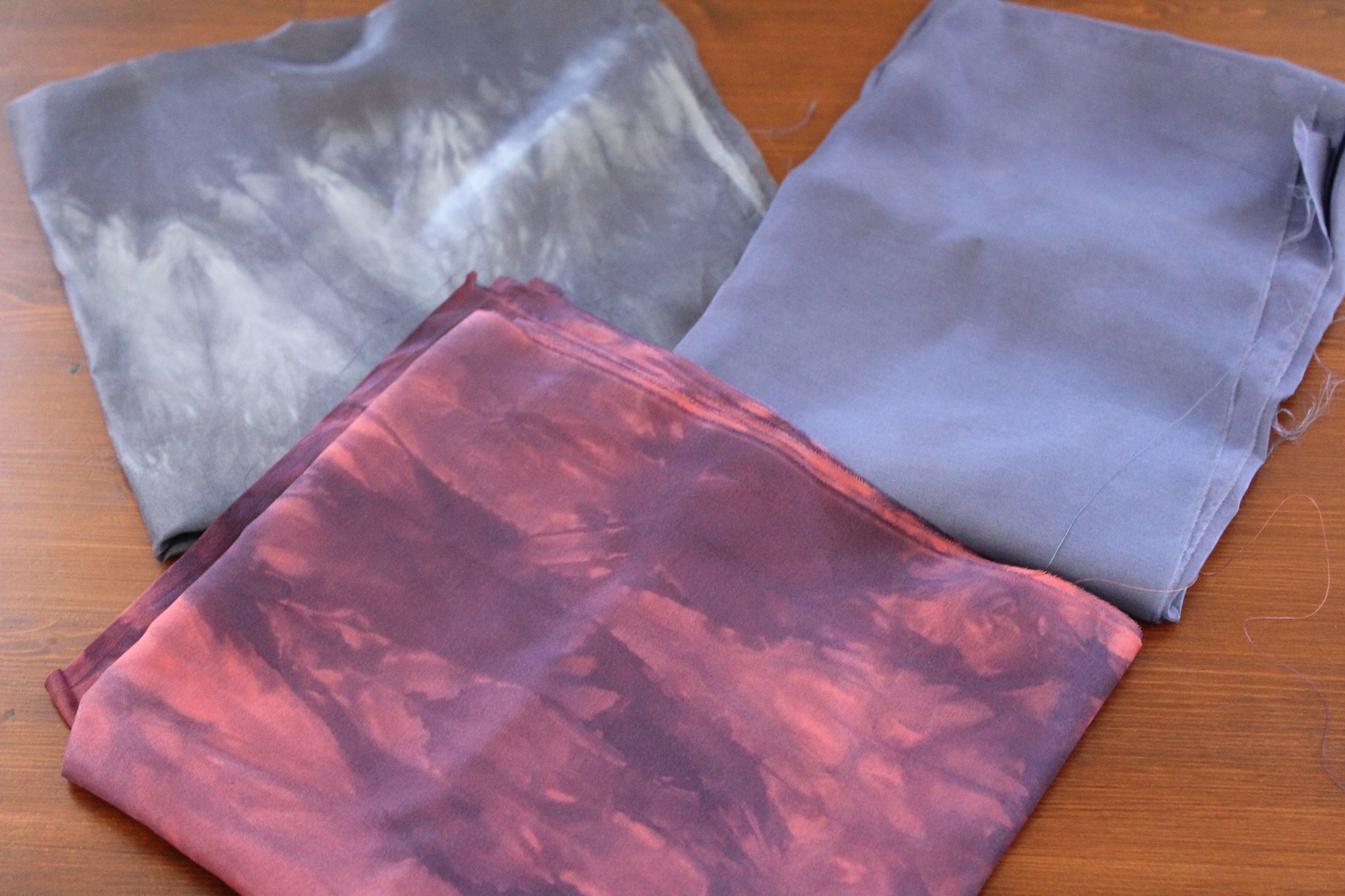 Die Stoffe sind Überbleibsel aus unserer Werkstatt. Da wir bald in Rente gehen wollen, trennen wir uns schon mal von einigen Dingen.