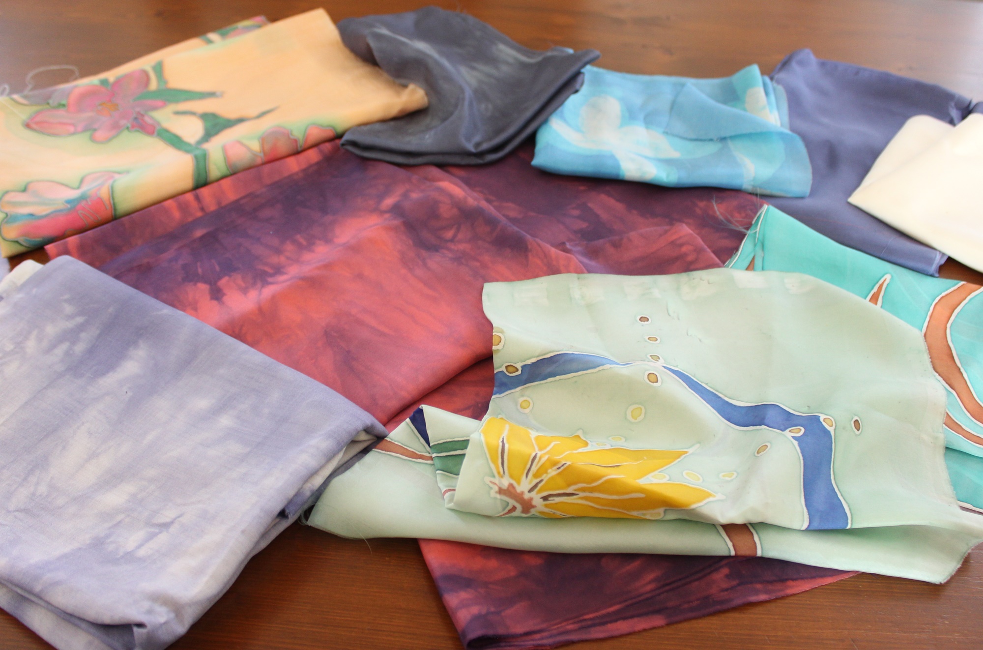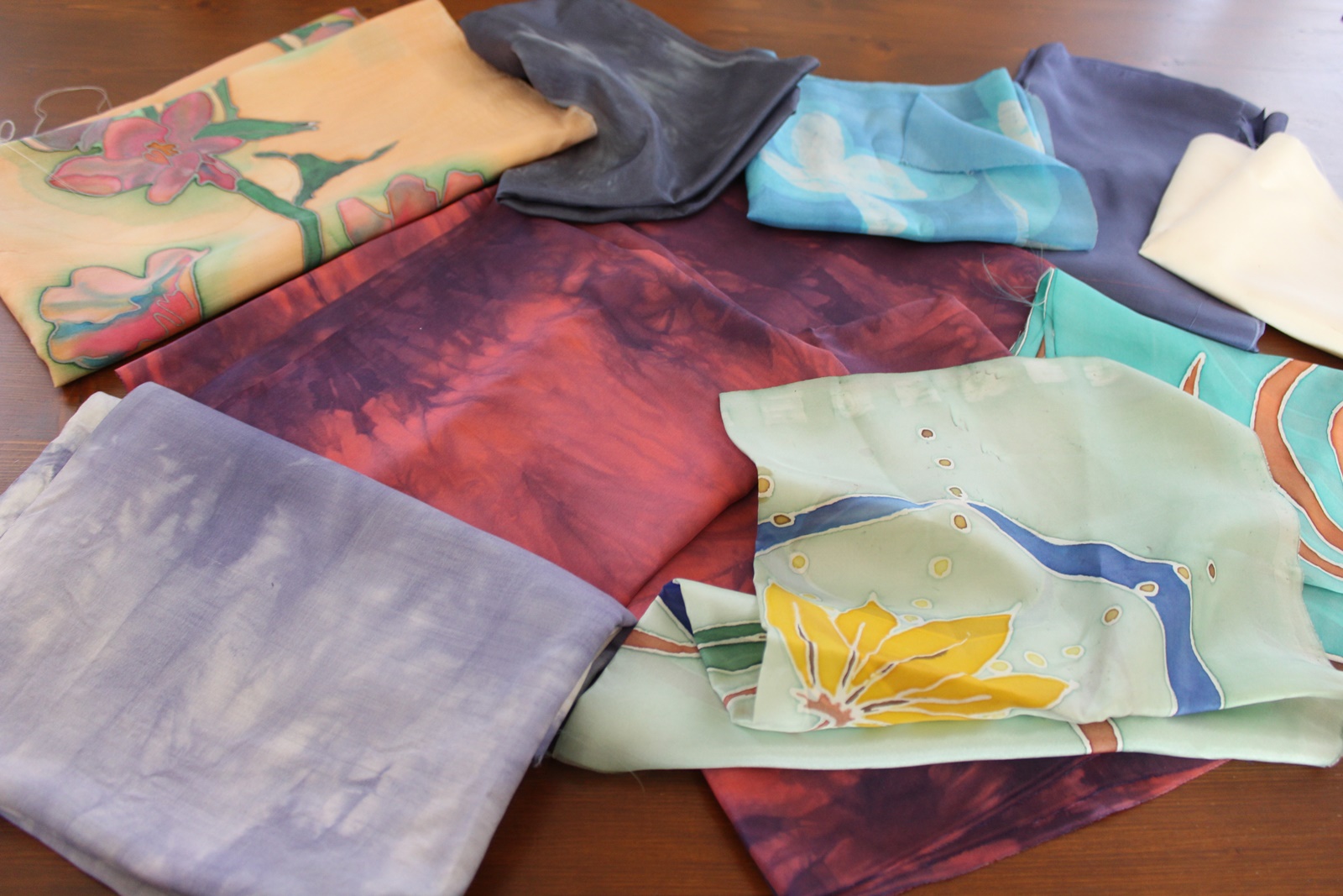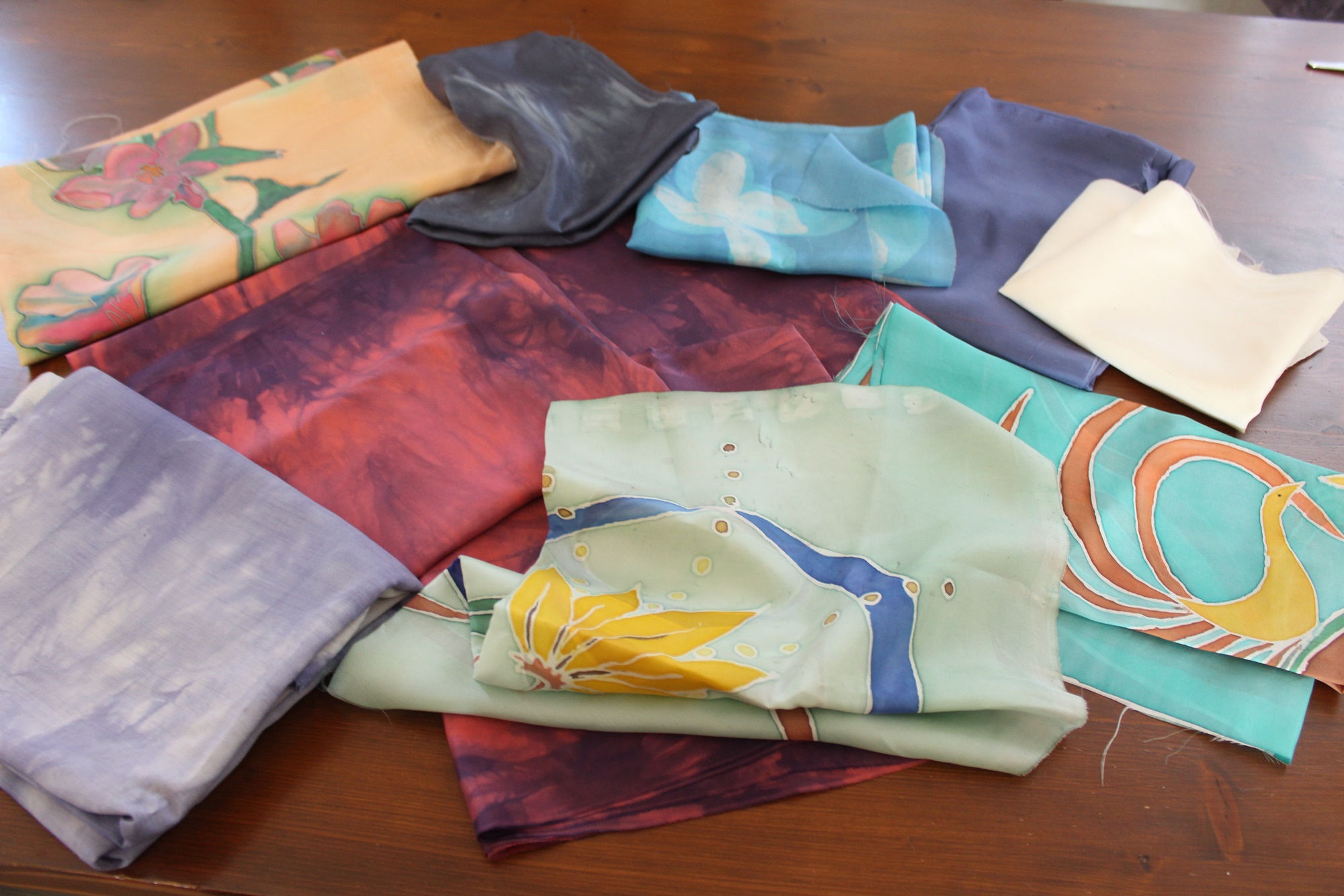 Paket Seidenstoff, handcolorierte bzw. bemalte Seide, ein besonderer Stoff zur kreativen Weiterverarbeitung.