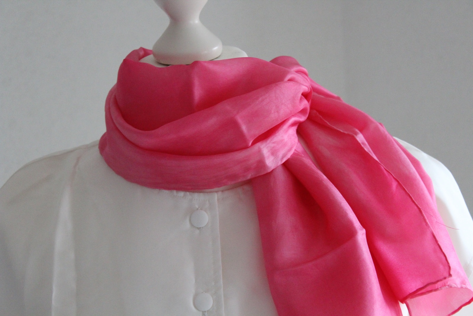Rosa ist die Farbe von diesem Schal aus Seide. Der Seidenschal ist von Hand coloriert und ohne Muster, hat lediglich leichte Farbschattierungen. Die freundliche Farbe dieses handgearbeiteten Tuches / Schals passt fast immer. Egal ob noch jung an Jahren oder schon etwas reifer, ob auf heller oder dunkler Kleidung, im Frühling, Sommer oder Herbst, der Seidenschal ist ein echter Allrounder. Und... auch ein tolles Geschenk für Frauen und Mädchen.