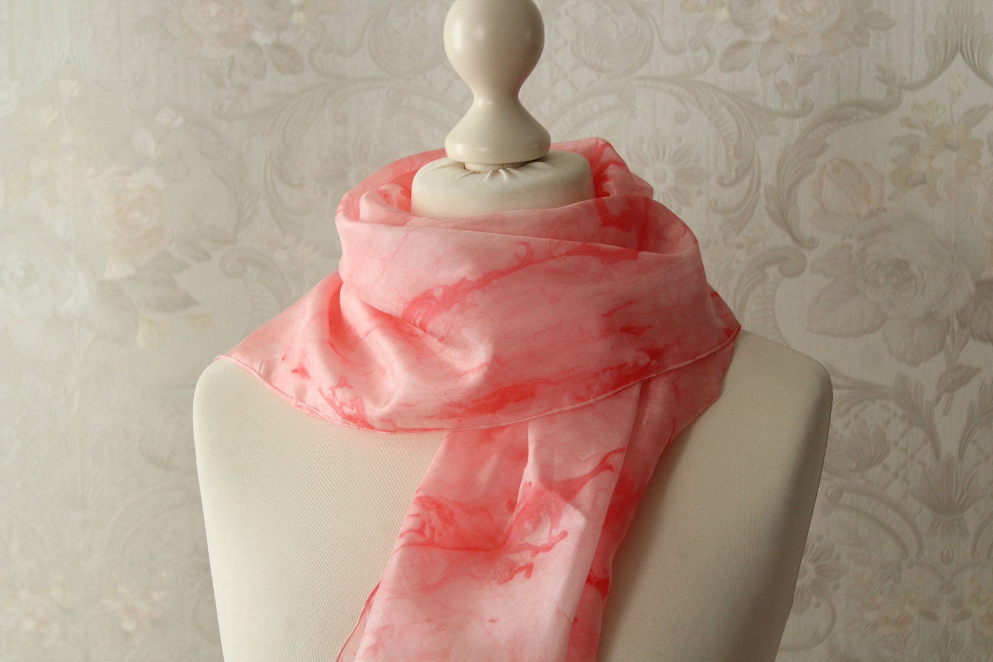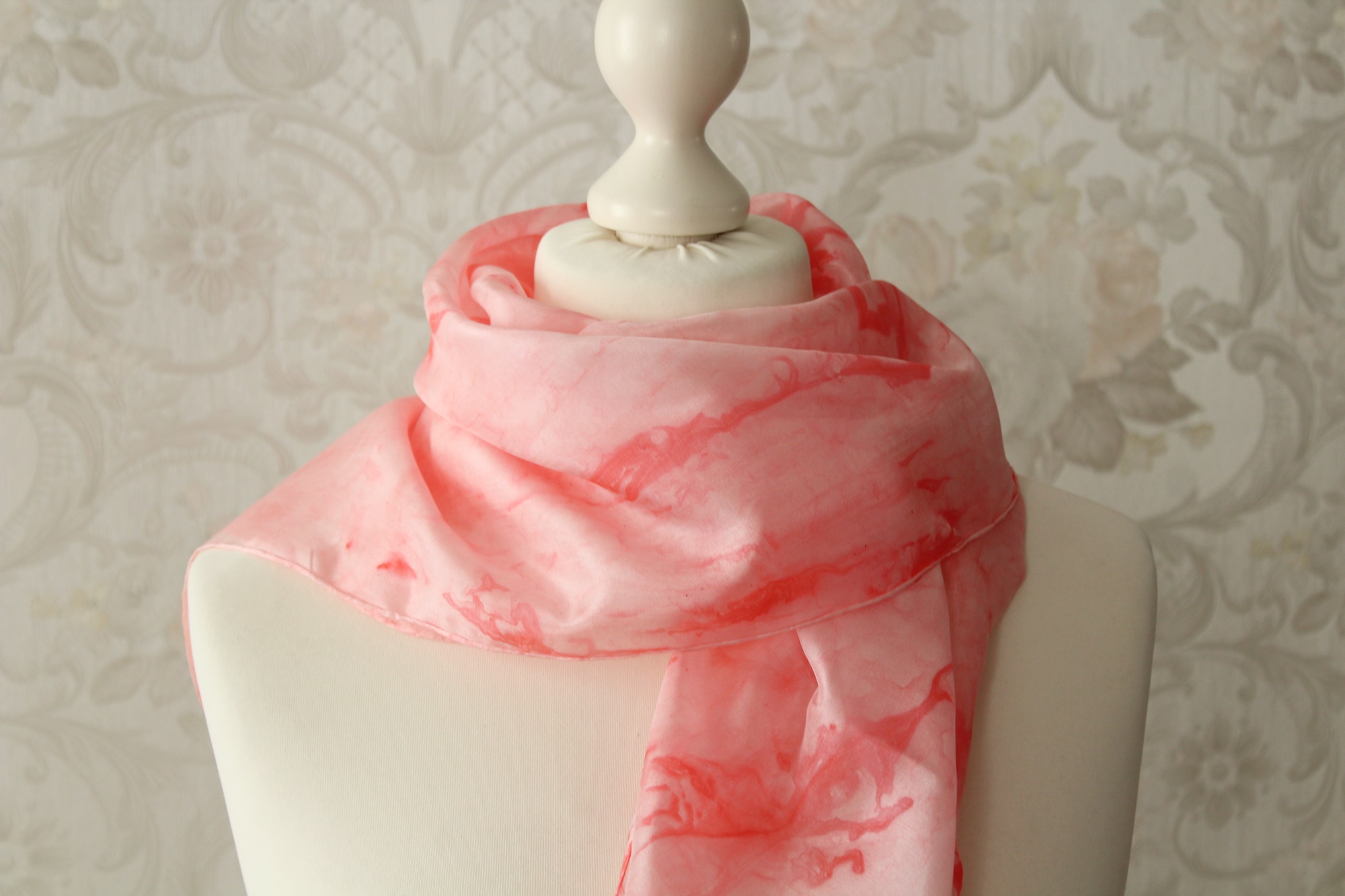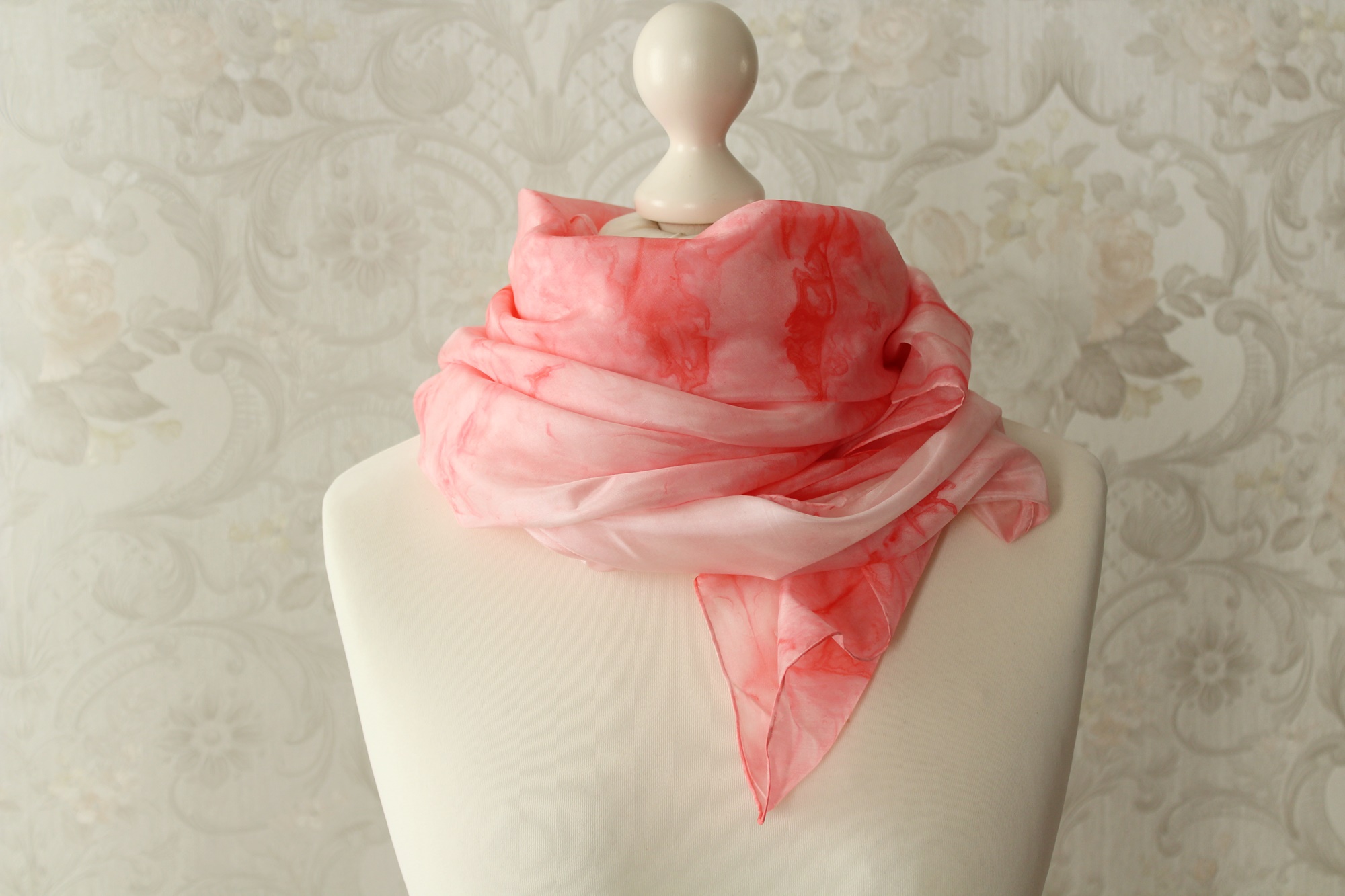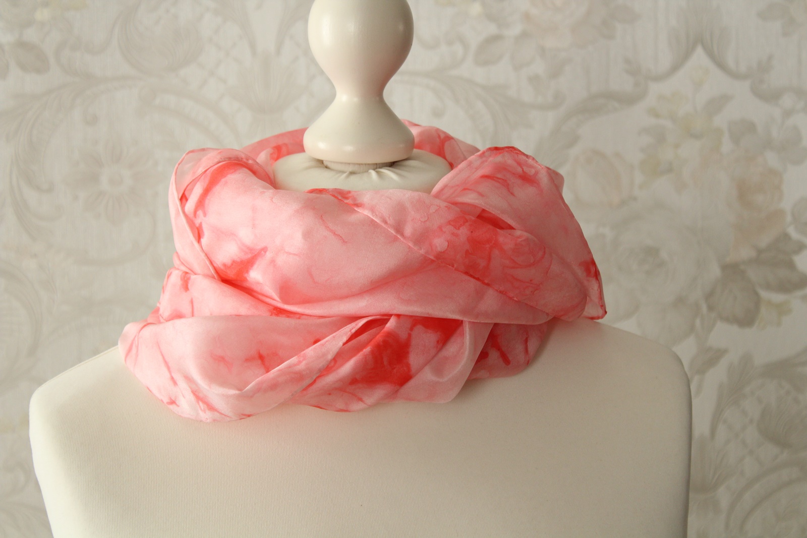 Miteinander geflüstert haben bei diesem Seidentuch verschiedene Farbtöne der Farben Rosa und Pink.