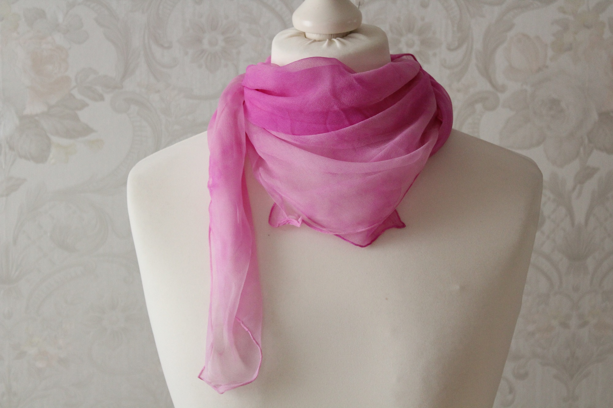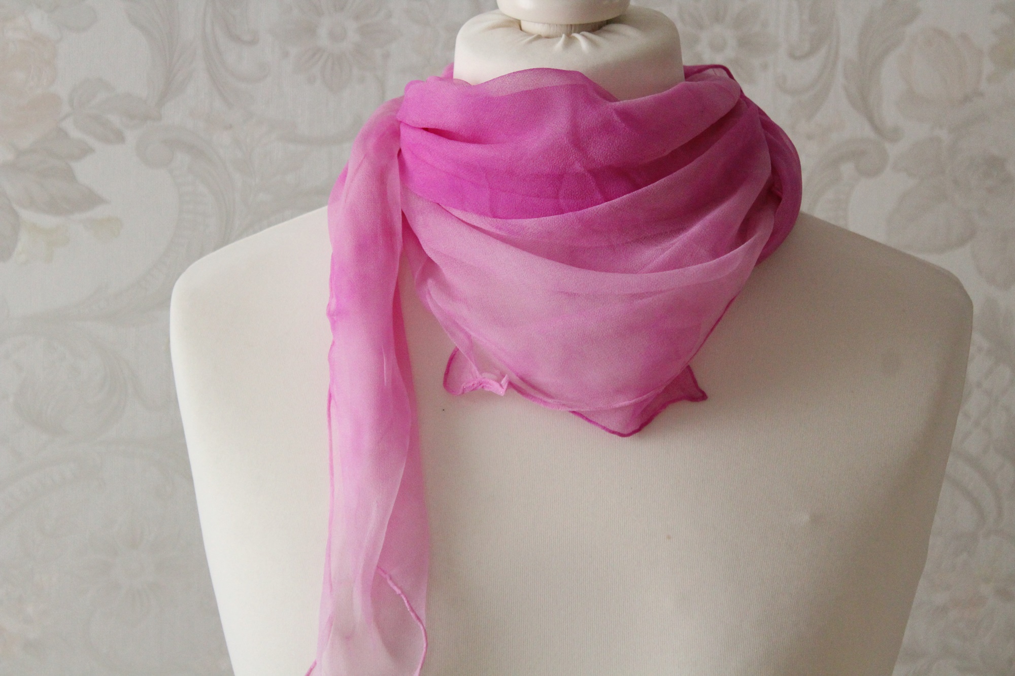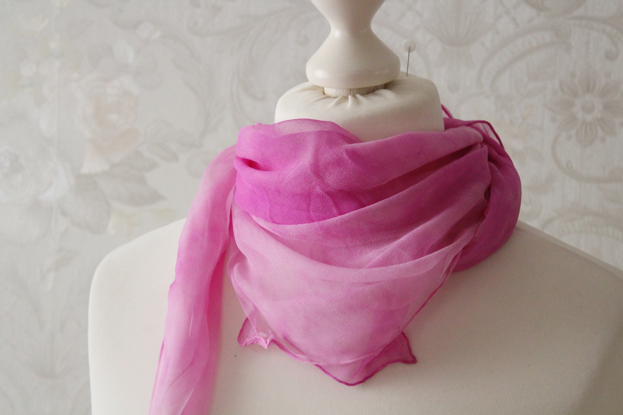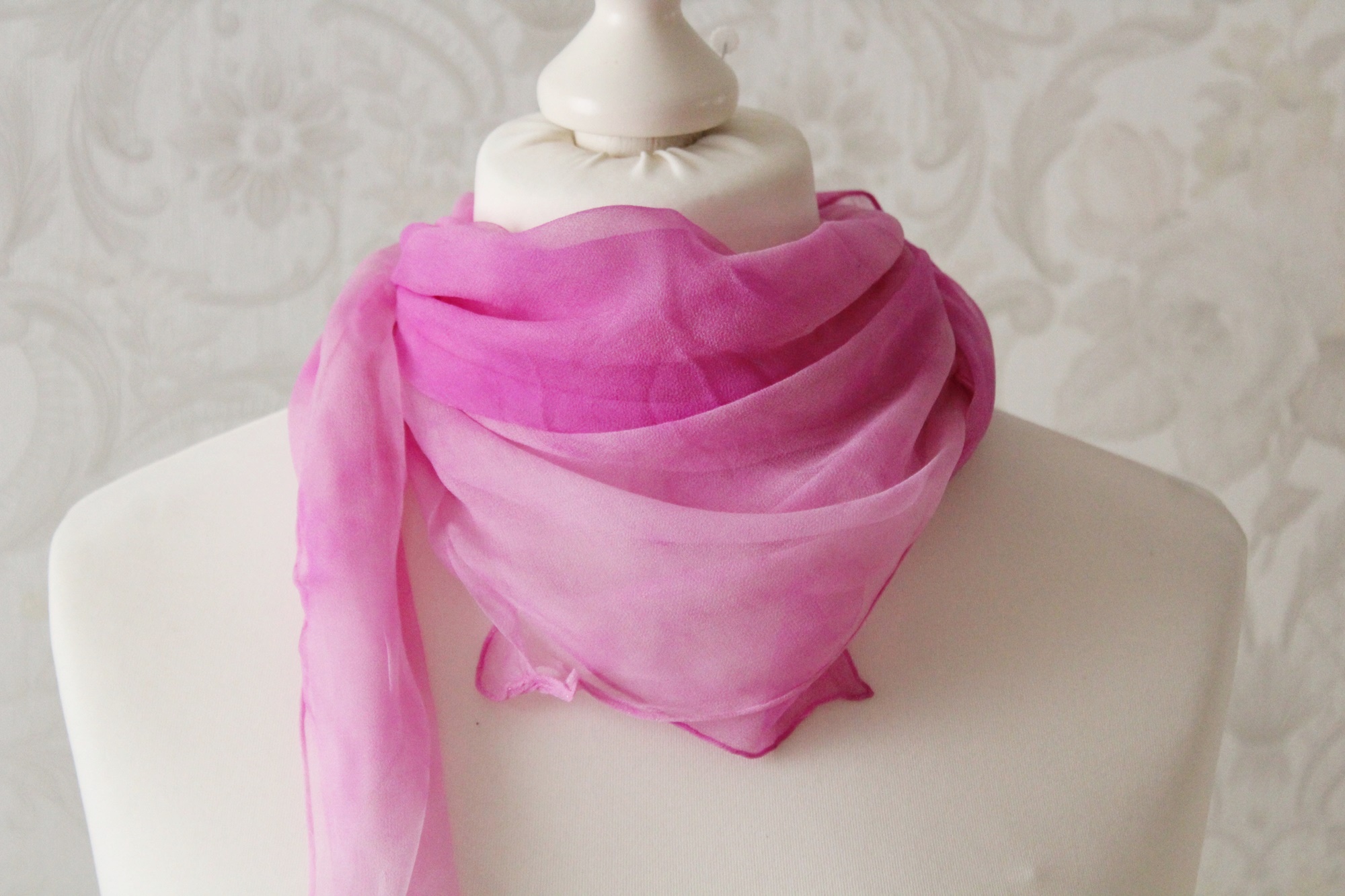 rosa Tuch aus Seiden Chiffon Seidentuch handgefärbt