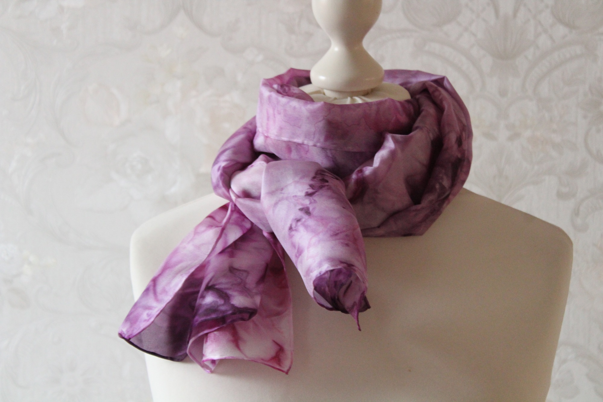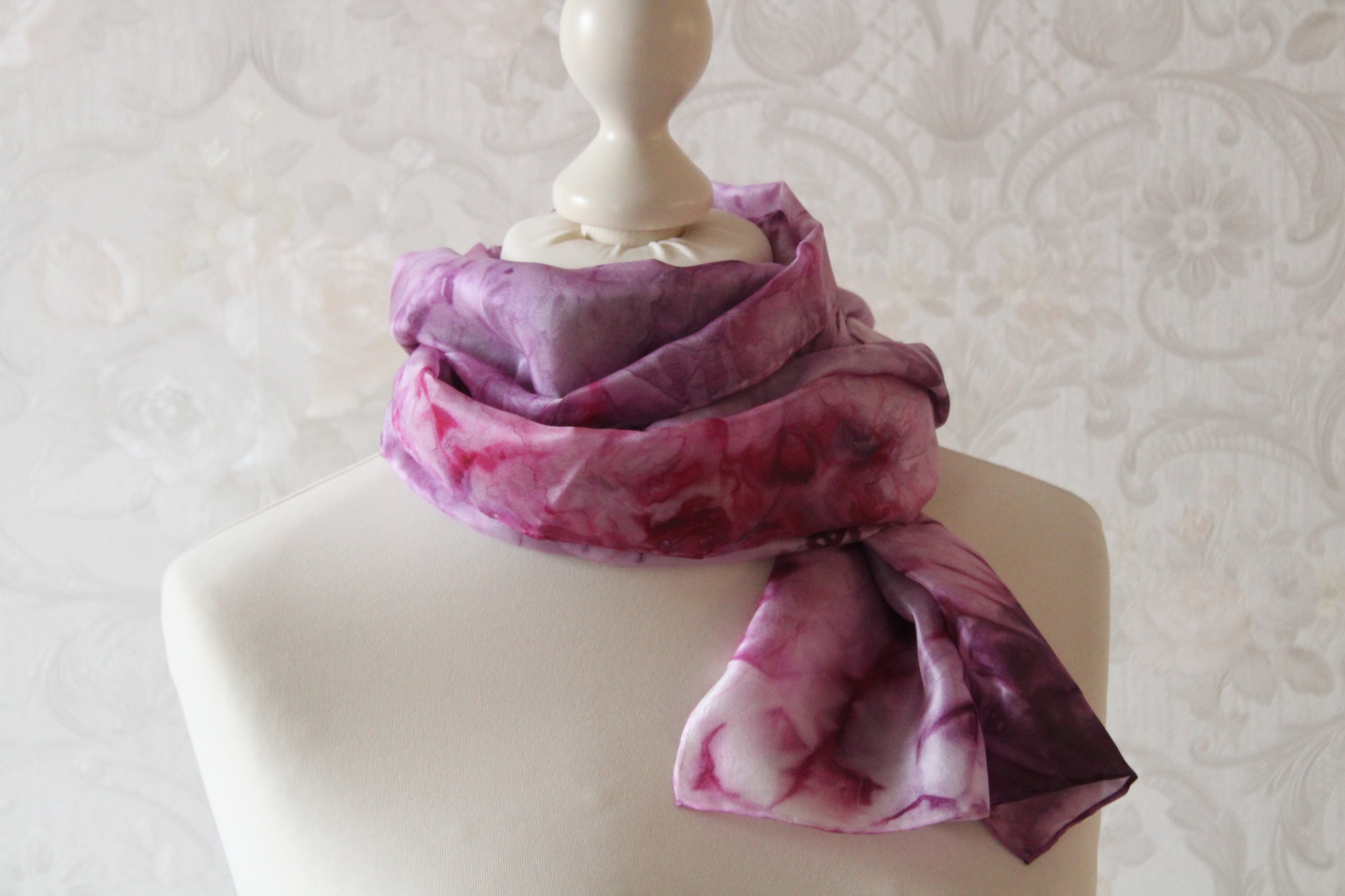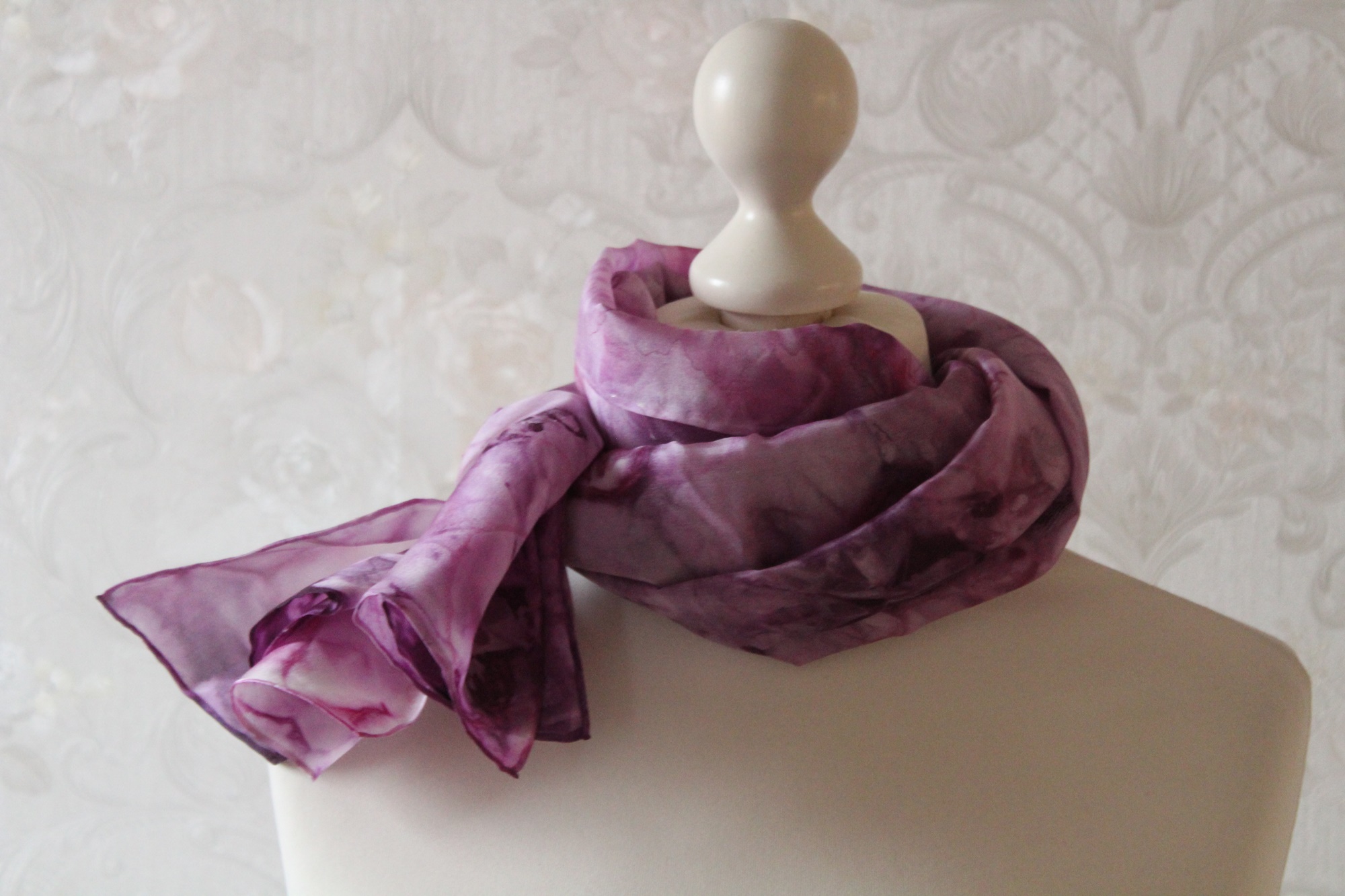 Der Seidenschal ist waschbar, ich würde Handwäsche empfehlen. Feucht bügeln. Ich habe alles auch schon einmal vorgewaschen, damit keine überschüssigen Farbreste der Seide anhaften.