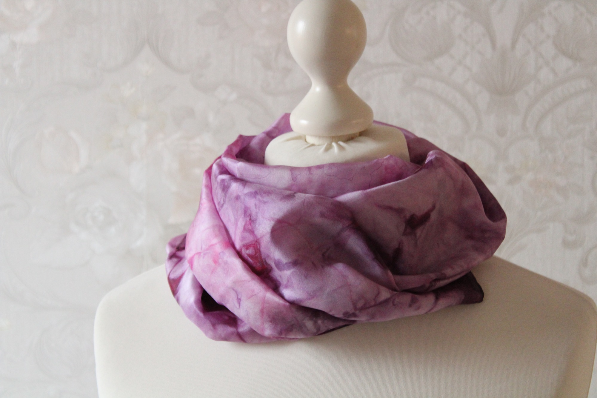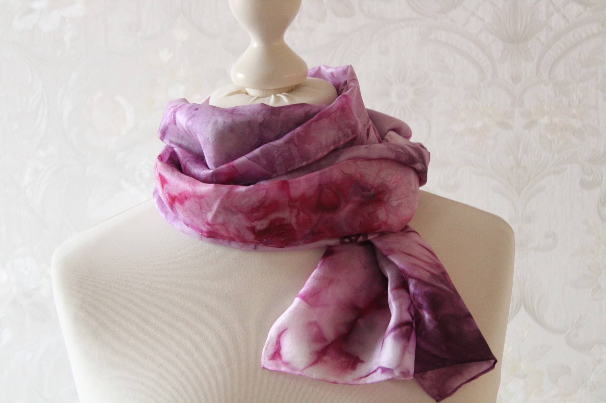 Schal aus Seide, Seidenschal der Farbgeflüster Reihe in den Farben Lila und Rosa.
