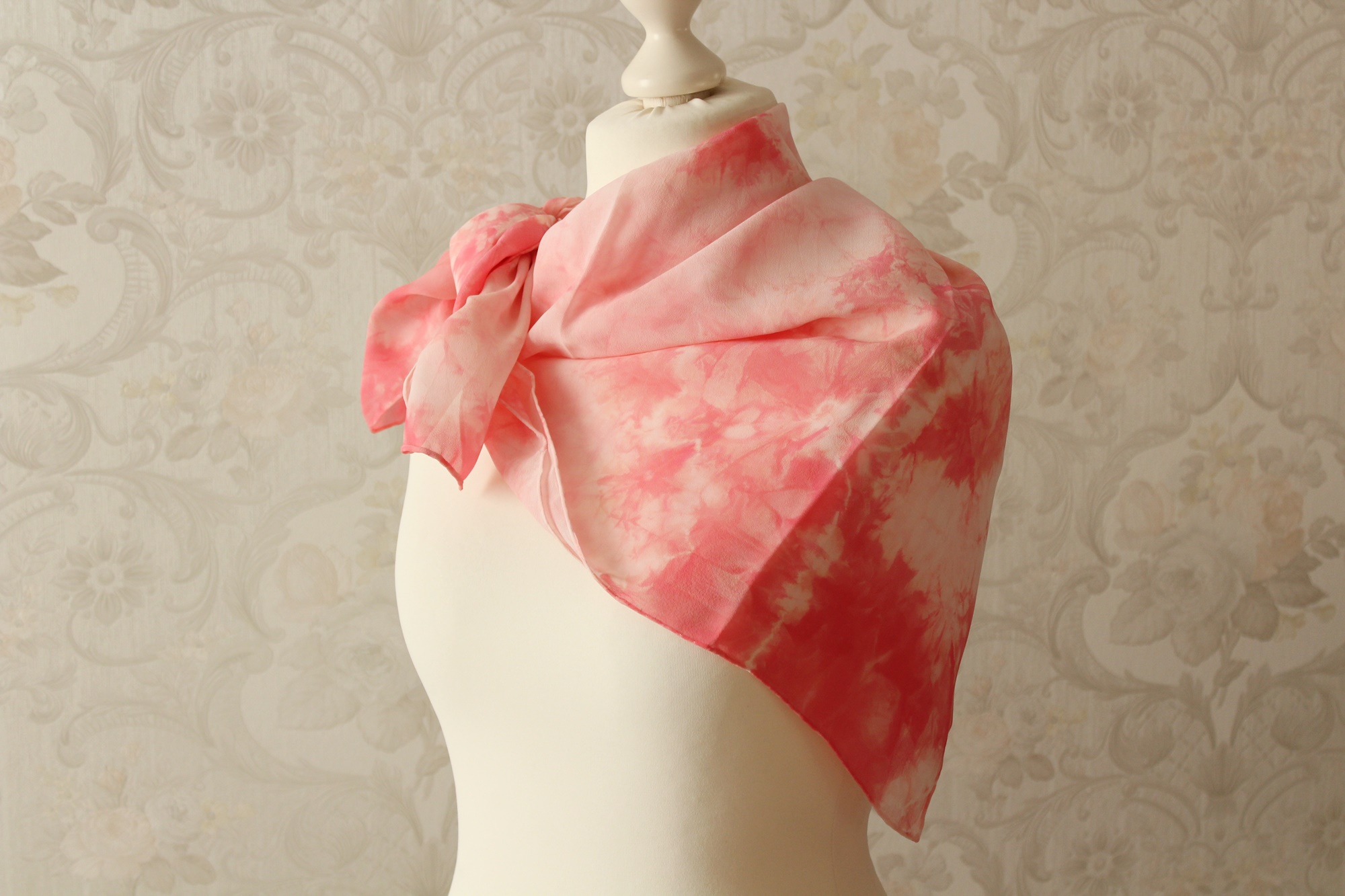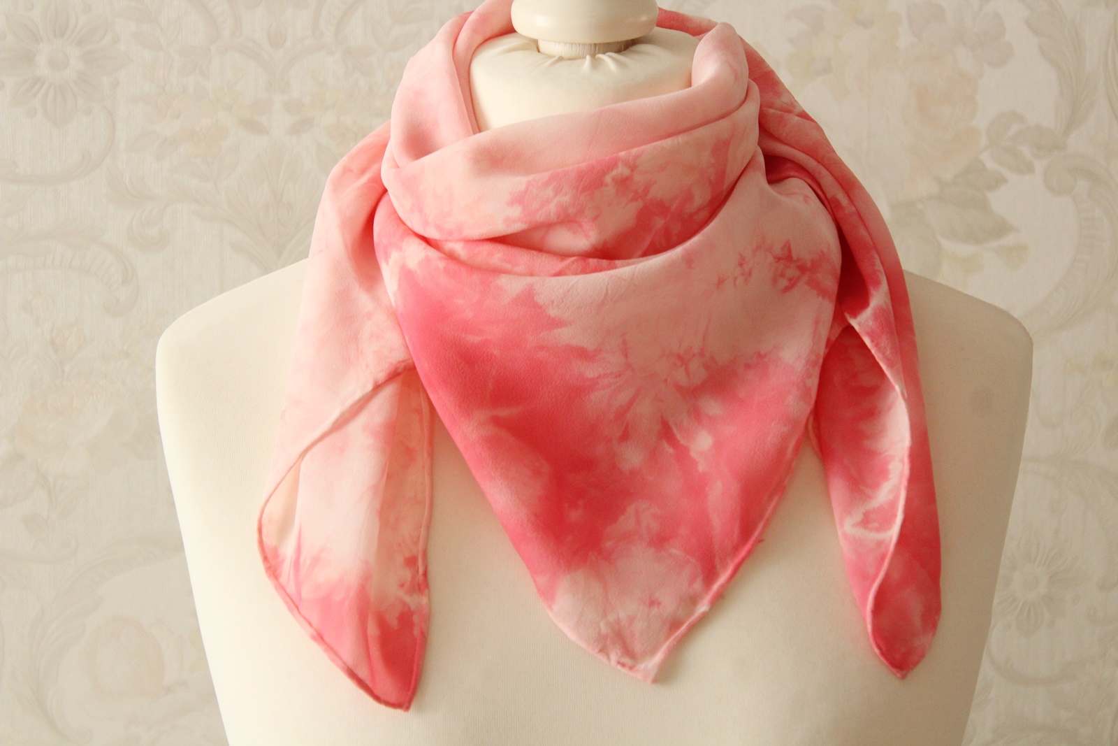Das Seidentuch ist waschbar, ich würde Handwäsche empfehlen. Feucht bügeln. Ich habe das Tuch auch schon einmal vorgewaschen, damit keine überschüssigen Farbreste der Seide anhaften.