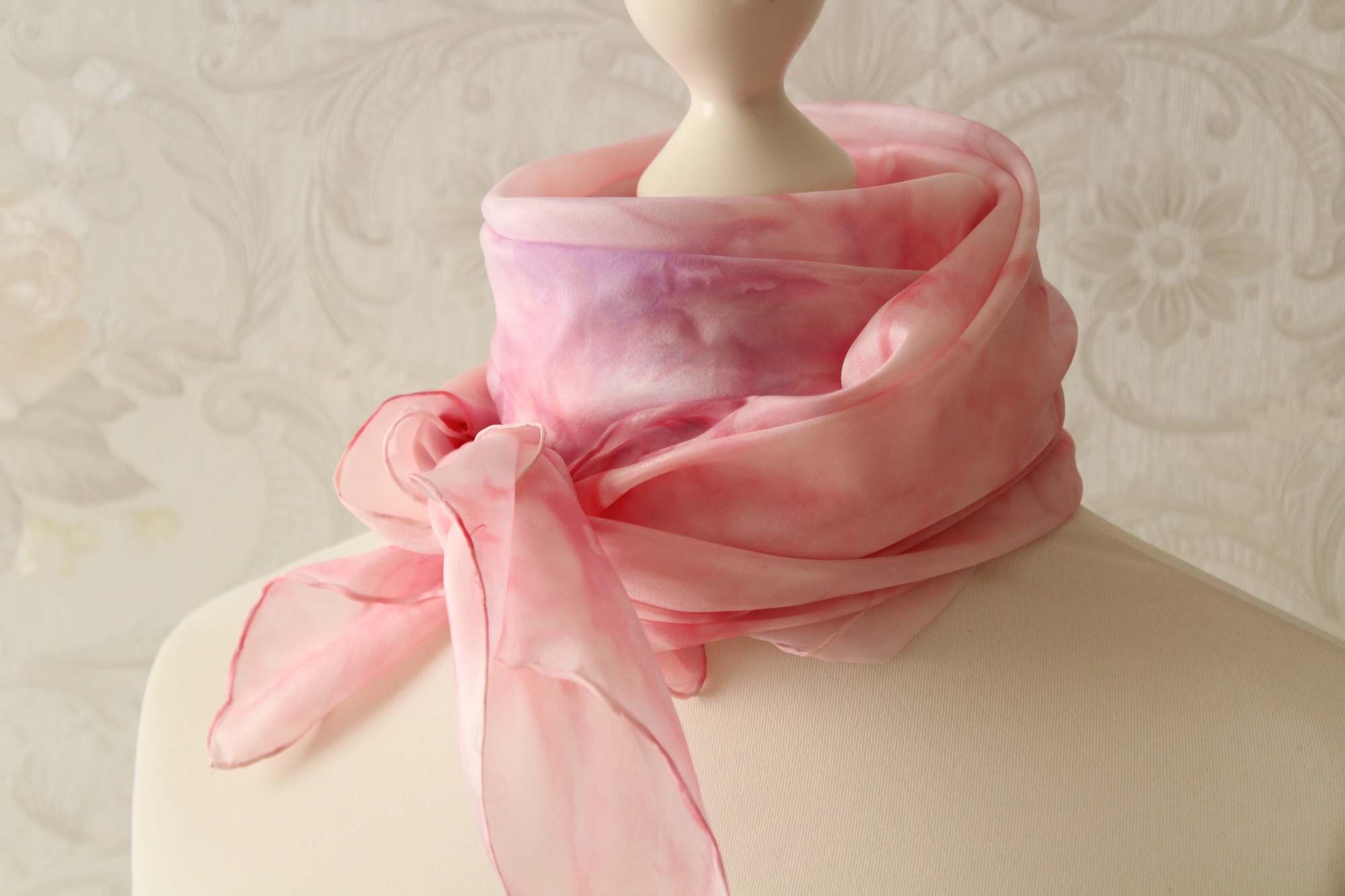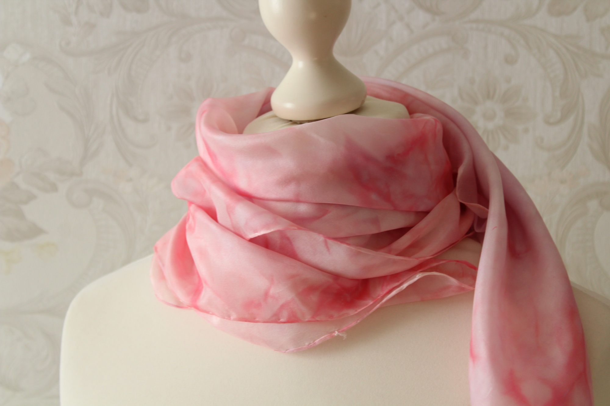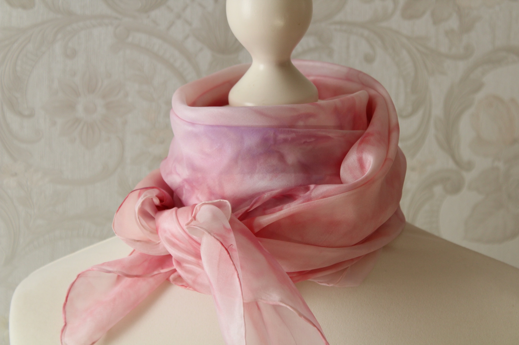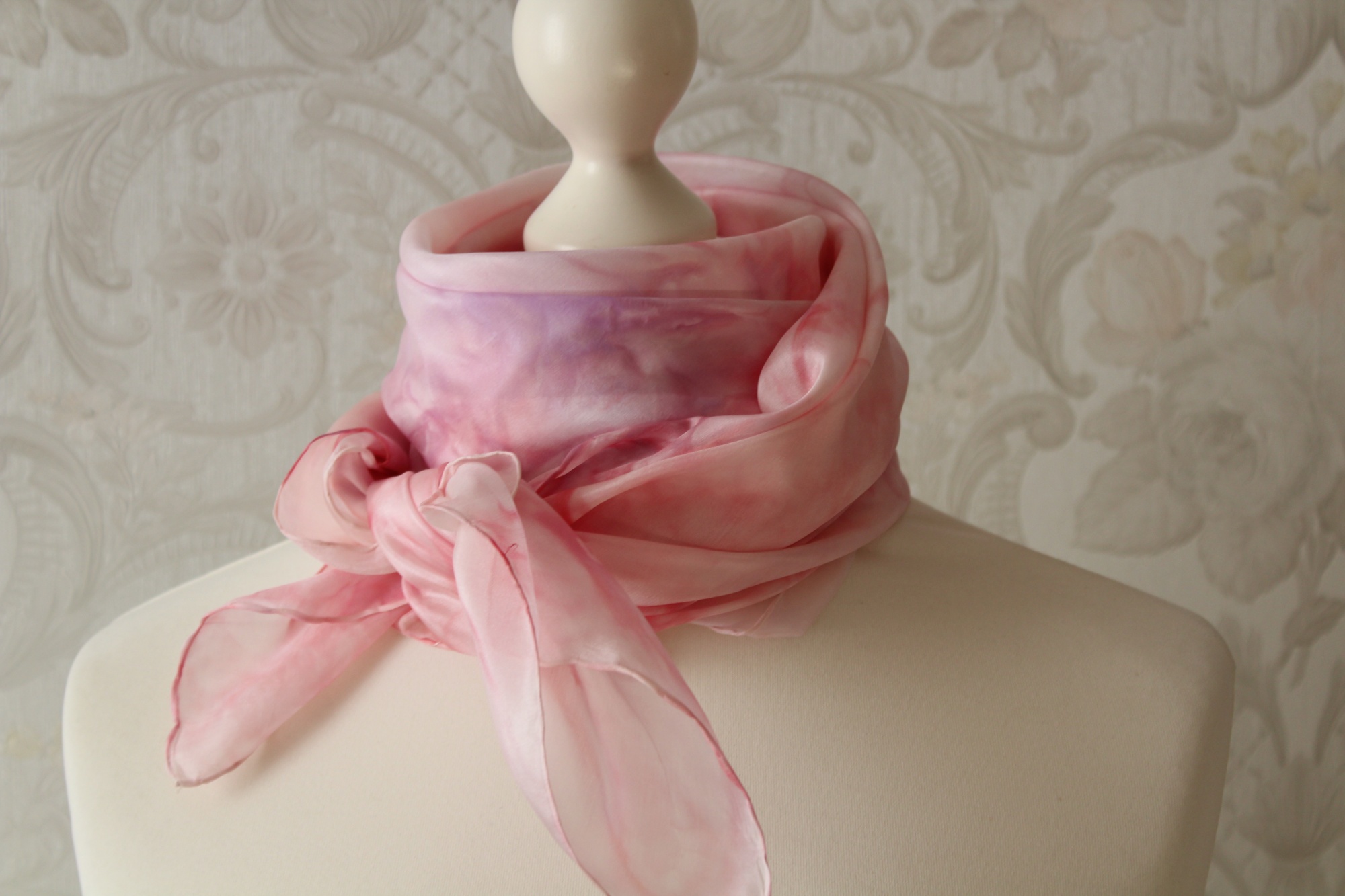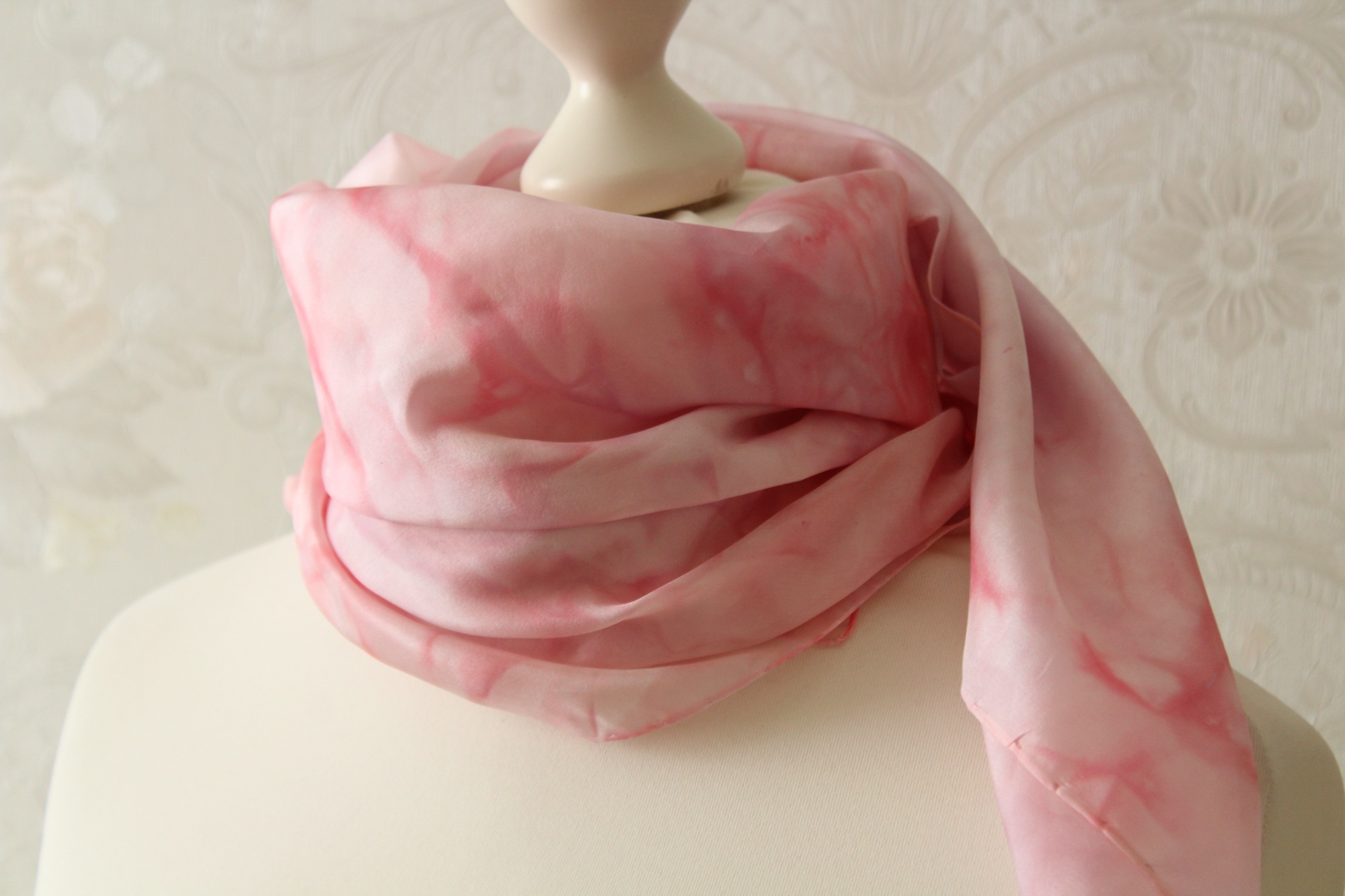Ich habe das Tuch auch schon einmal vorgewaschen, damit keine überschüssigen Farbreste der Seide anhaften.