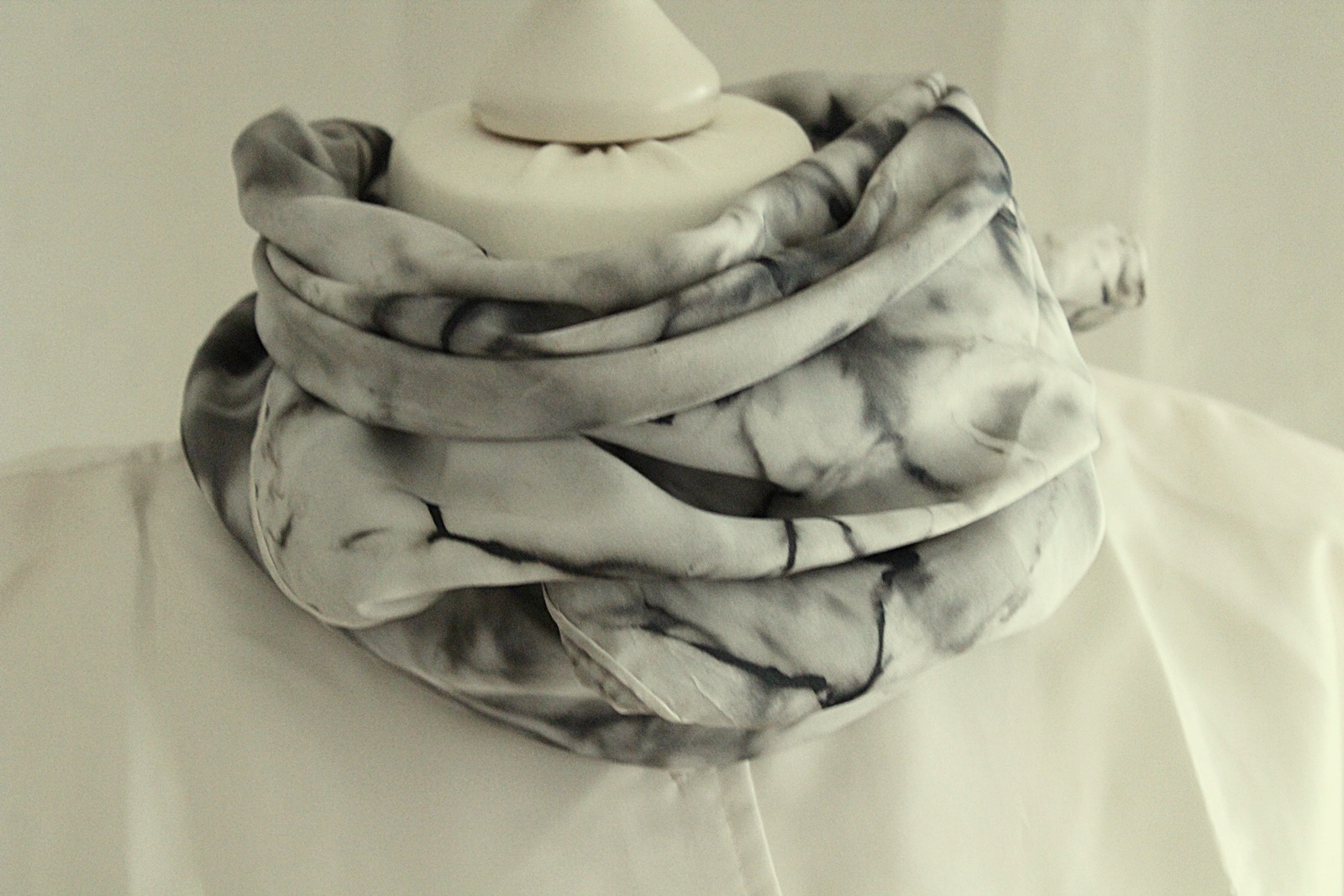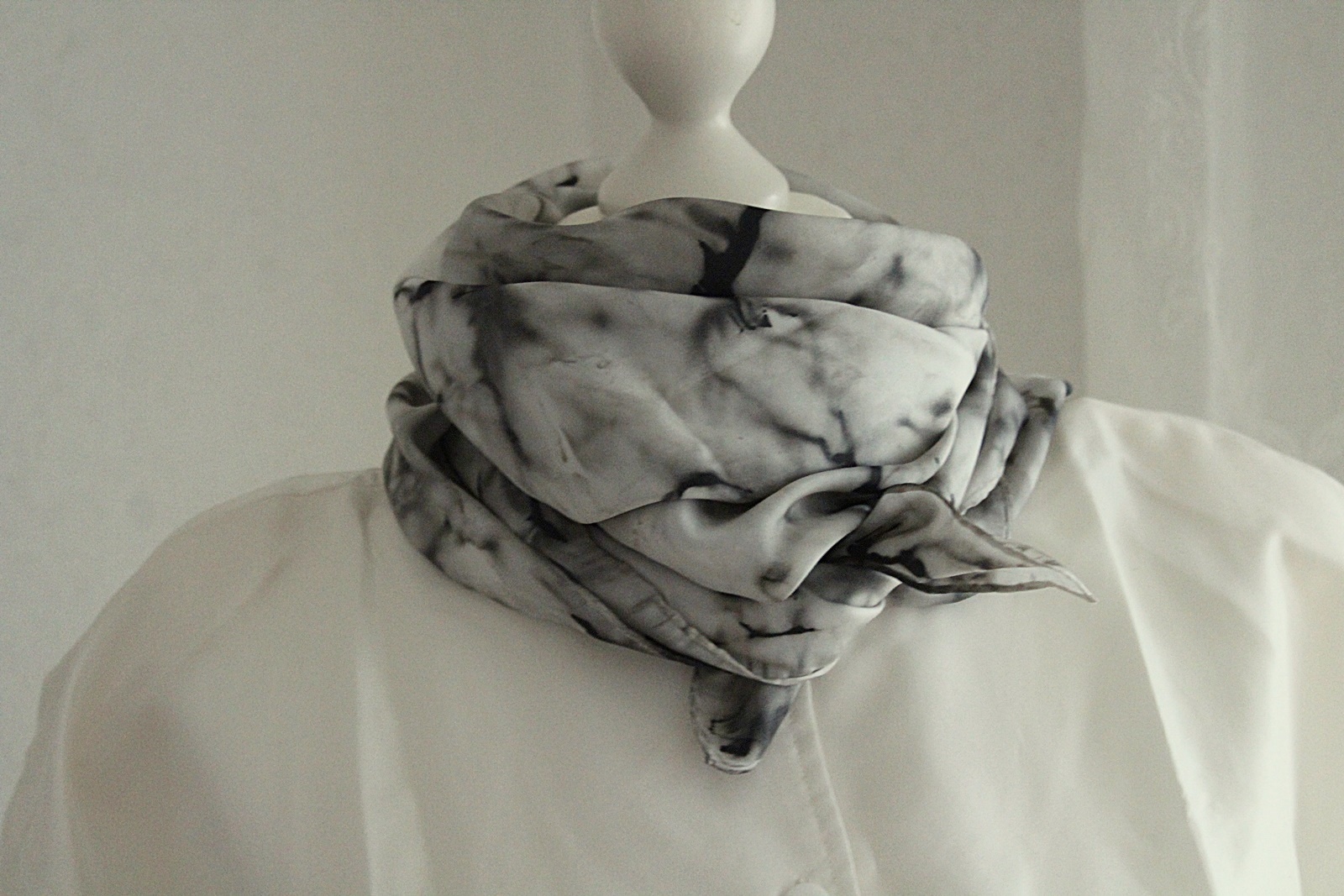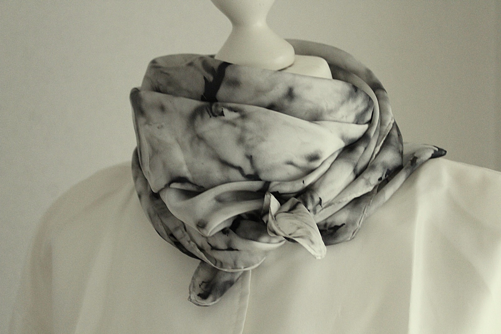 Seidentuch handbemalt in den Farben Grau und Schwarz. Seide ist ein ganz besonderer Stoff, sie ist leicht und bequem, isoliert sehr gut, im Winter warm / im Sommer kühl und ist wohl die bekannteste Naturfaser.