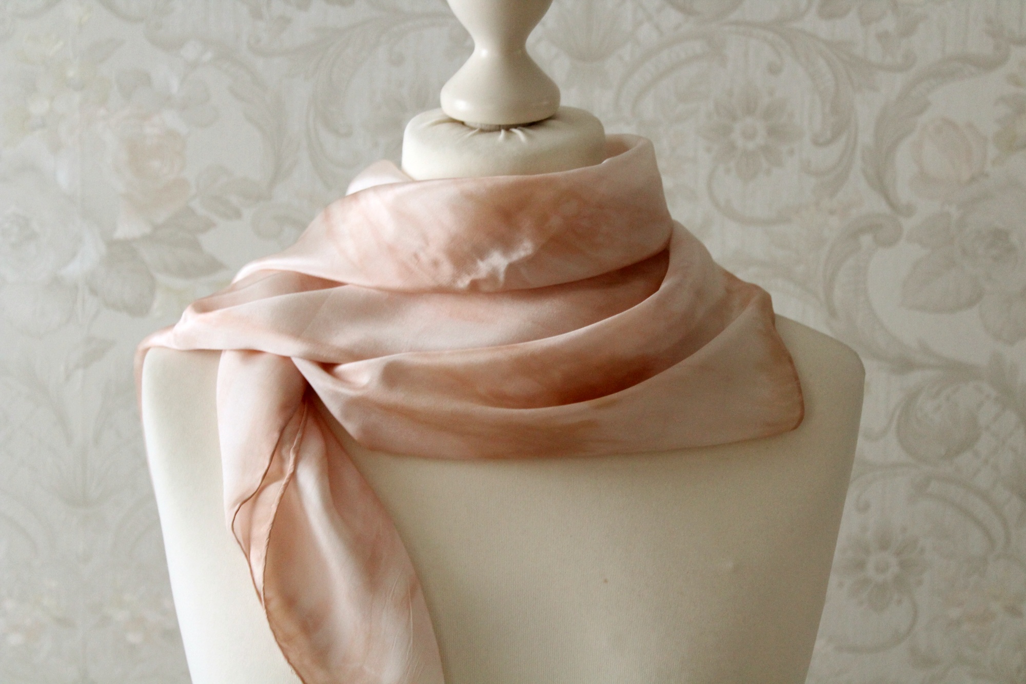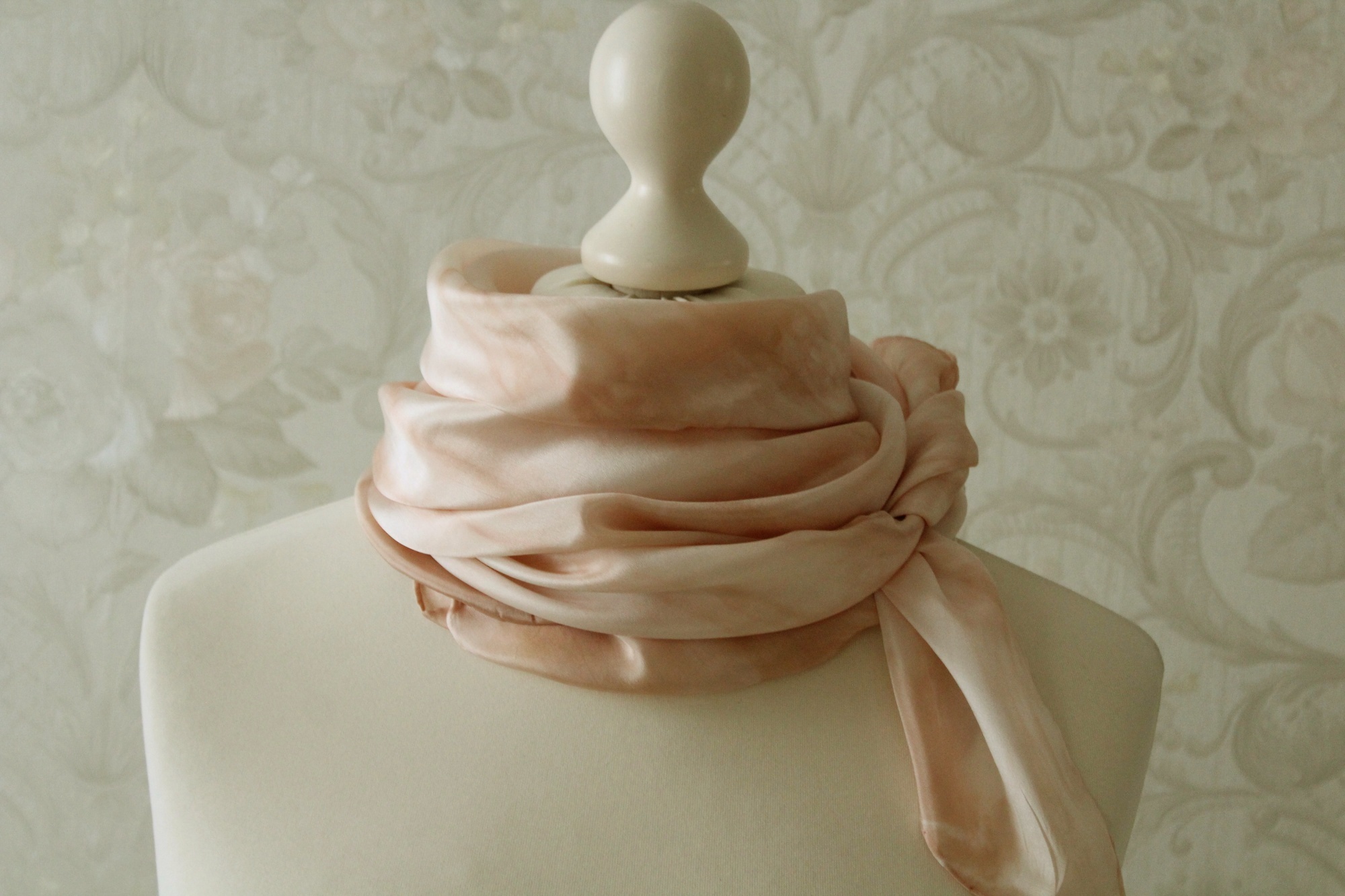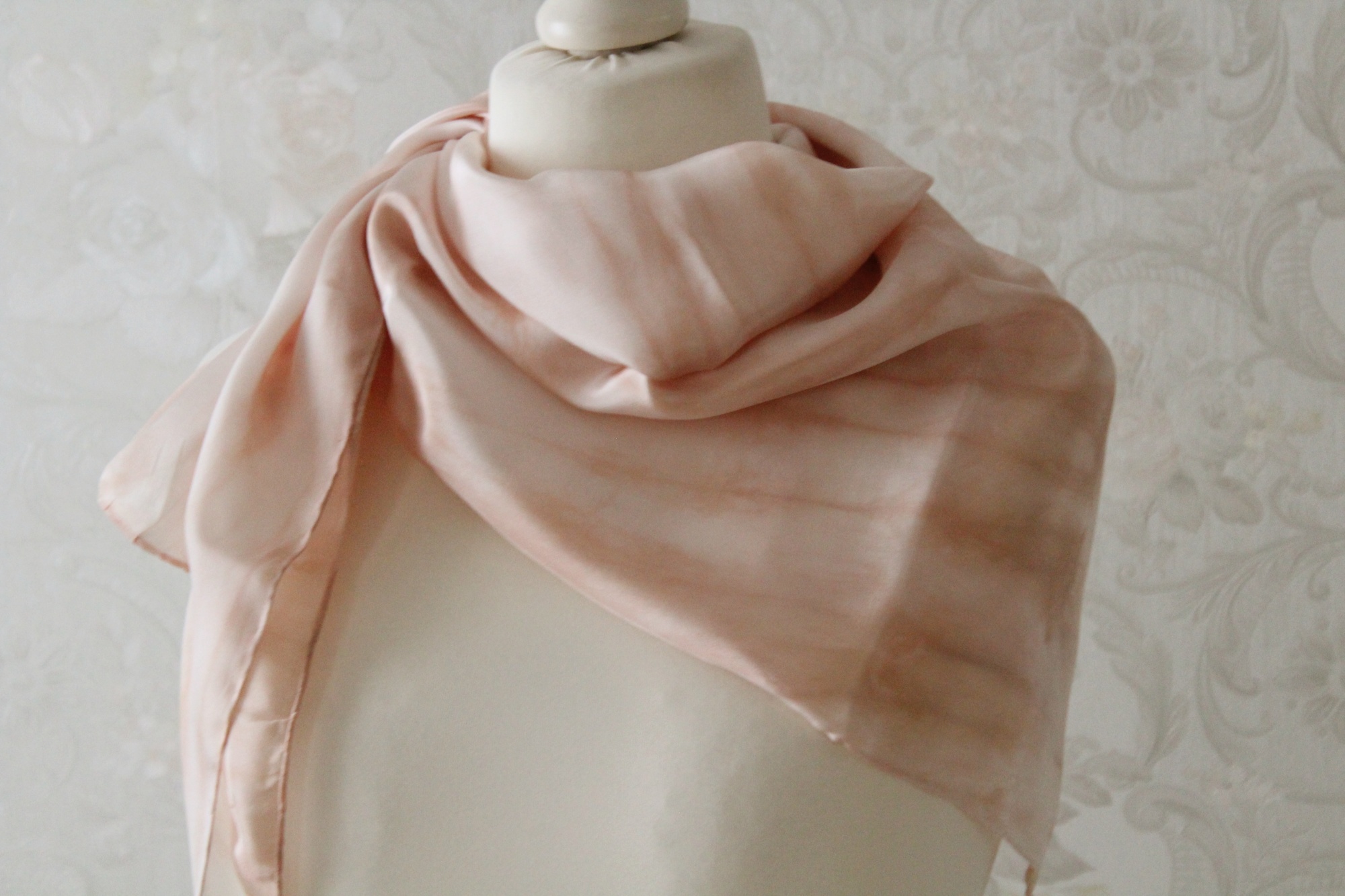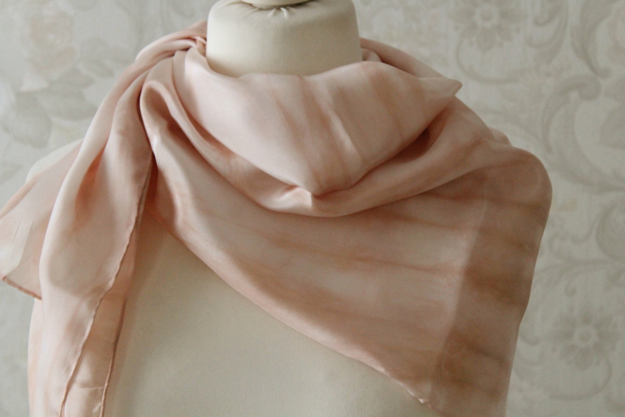 Das Tuch aus Seide ist in Handarbeit gefertigt und ein weiteres Seidentuch der Sinfonie Reihe. Es ist recht groß, ca.110 x 110 cm. Helle beige Töne wechseln sich harmonisch ab. So ist dieses Tuch genau richtig für alle, die ein dezenteres Tuch suchen. Die Farbverläufe sind etwas streifenförmig angelegt. Die Seidenart ist eine stabile Crepe de Chine Seide. Diese ist etwas dicker als die übliche Ponge Seide und hat eine leicht strukturierte Oberfläche. Dies hat den Vorteil, dass die Seide nicht so schnell knittert und nicht zwingend gebügelt werden muss.