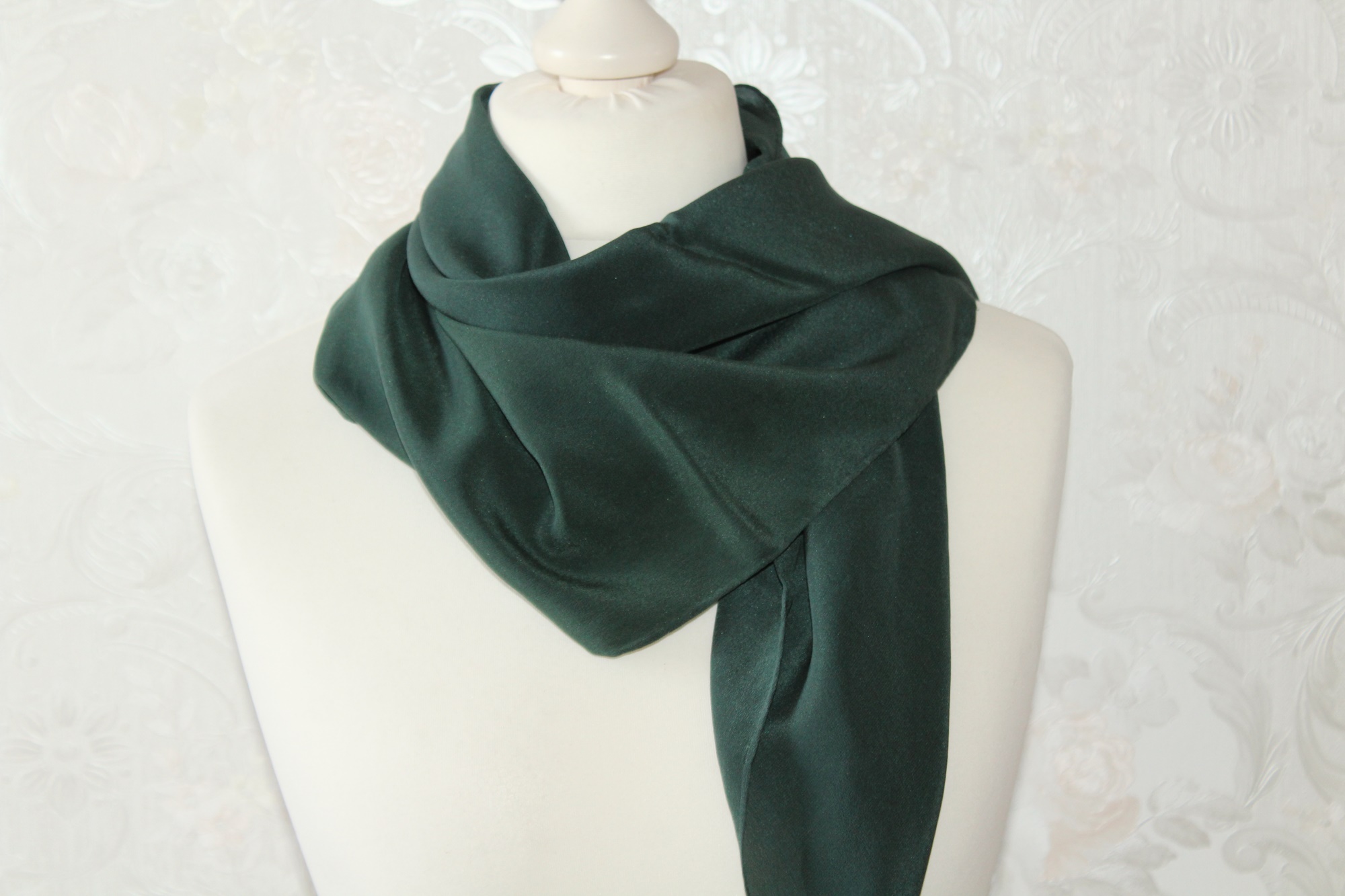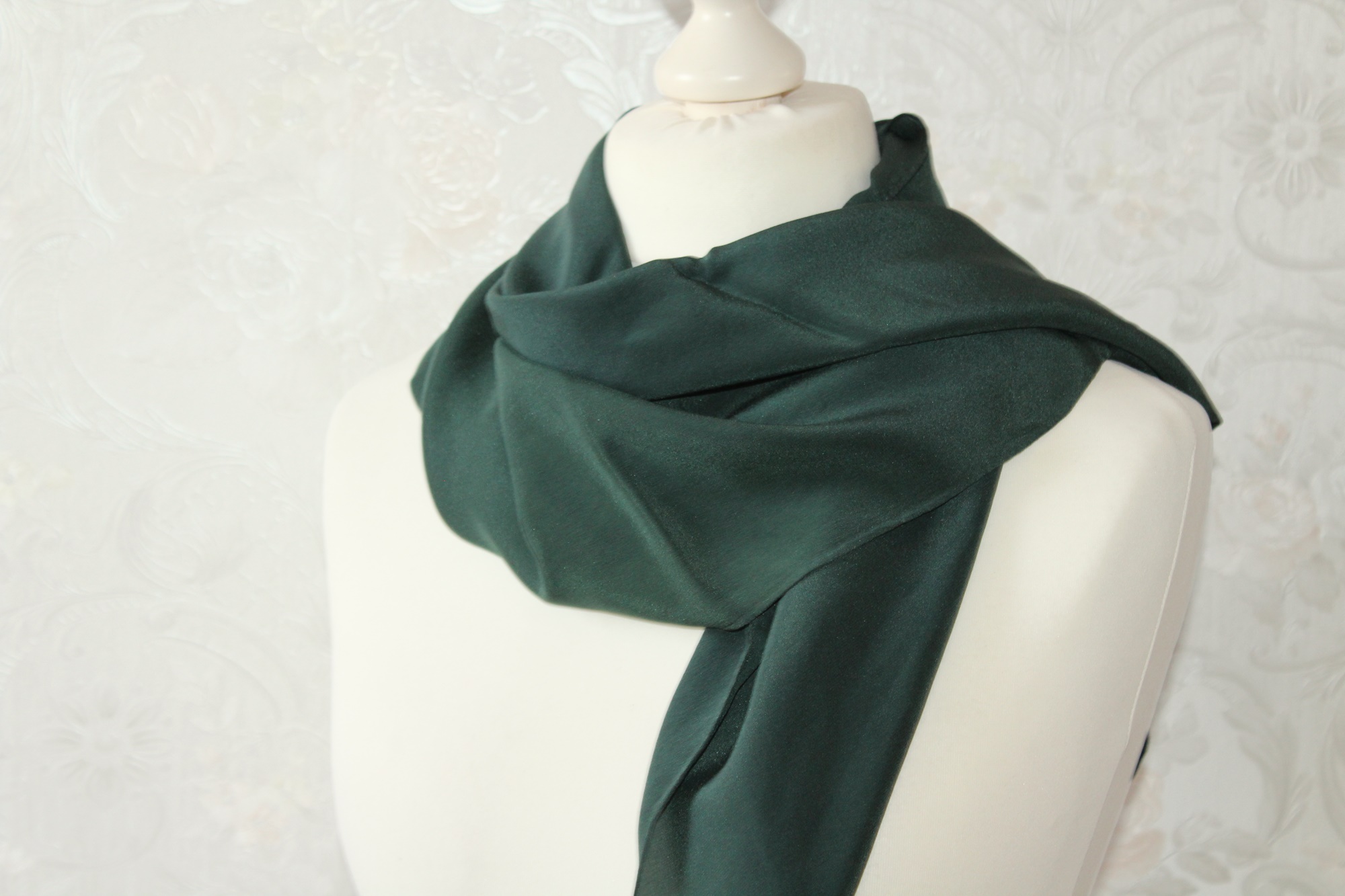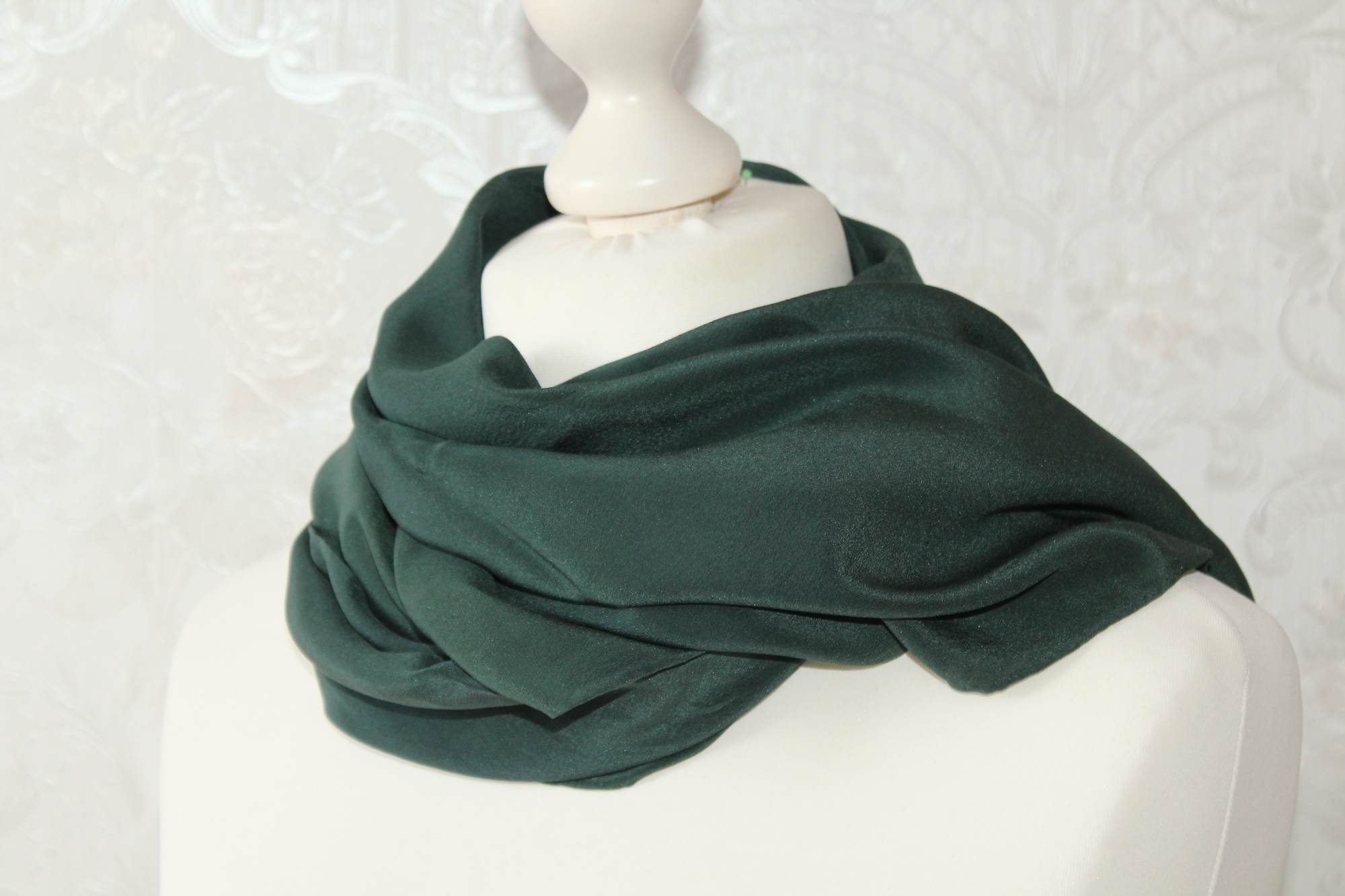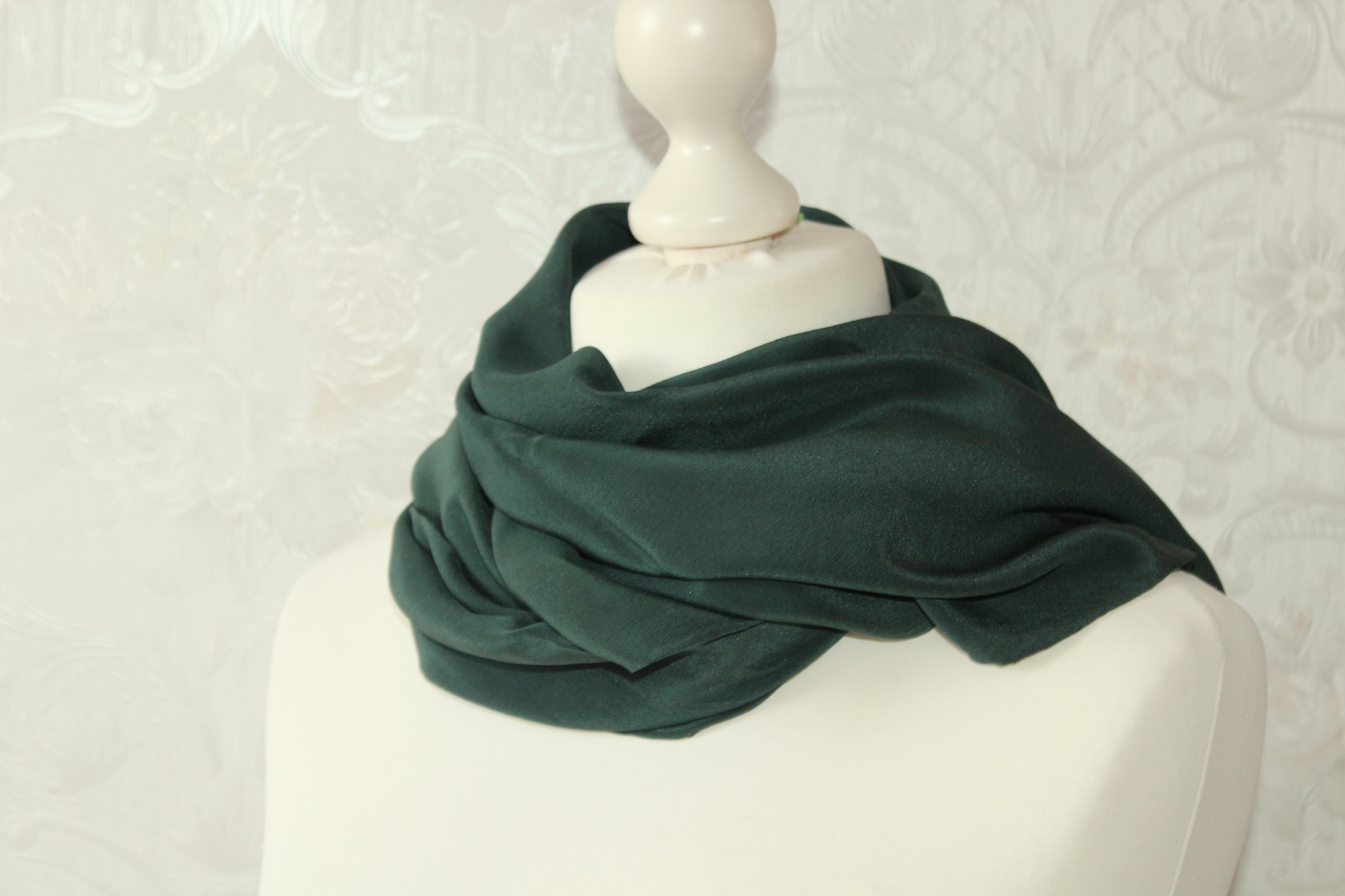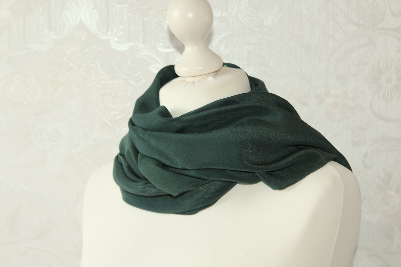 Tannengrünes Seidentuch, ein coloriertes Tuch in Handarbeit gefertigt. Ein bedecktes dunkles Grün ist die Farbe. Es ist einfarbig und ohne Muster.