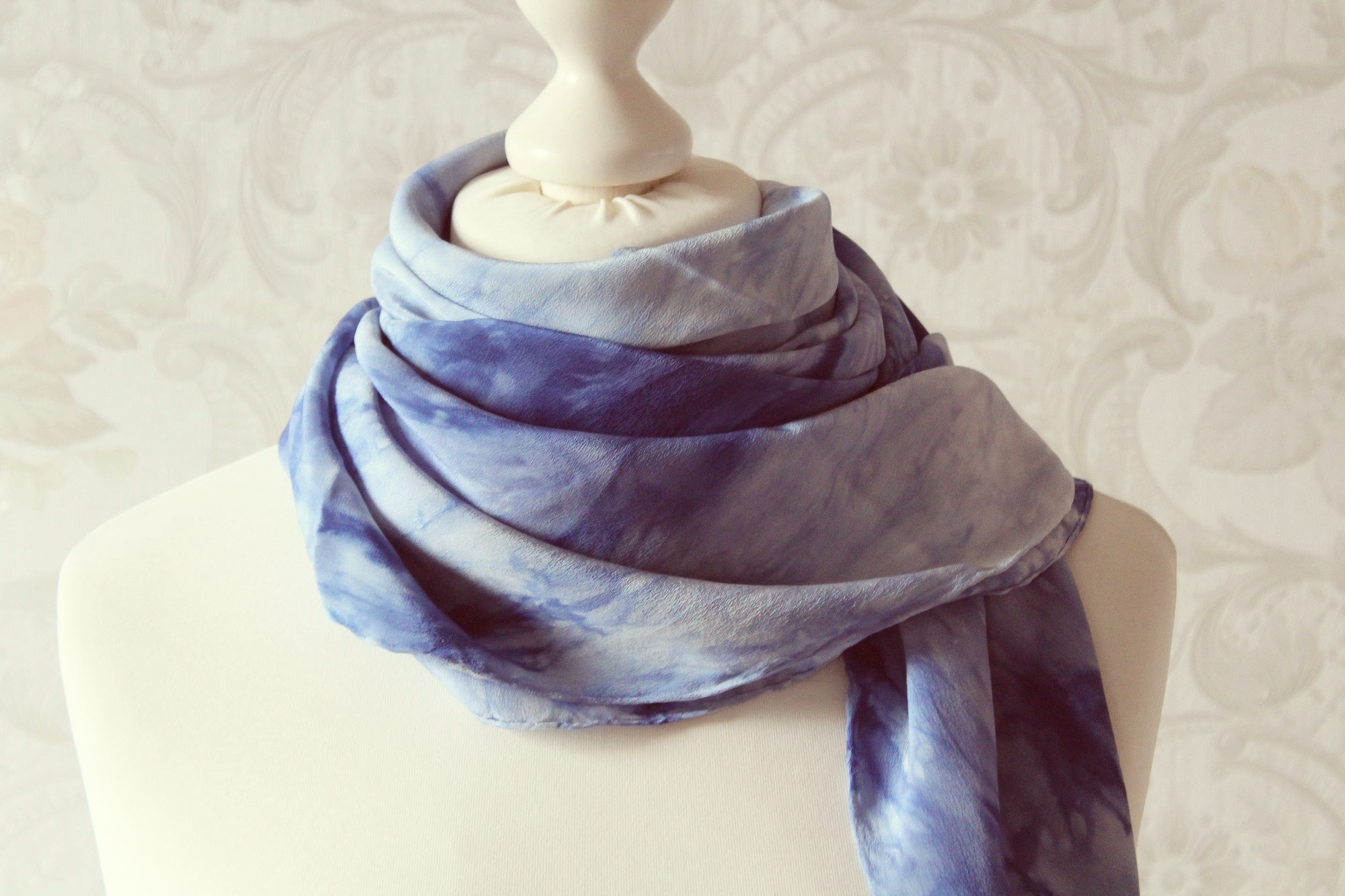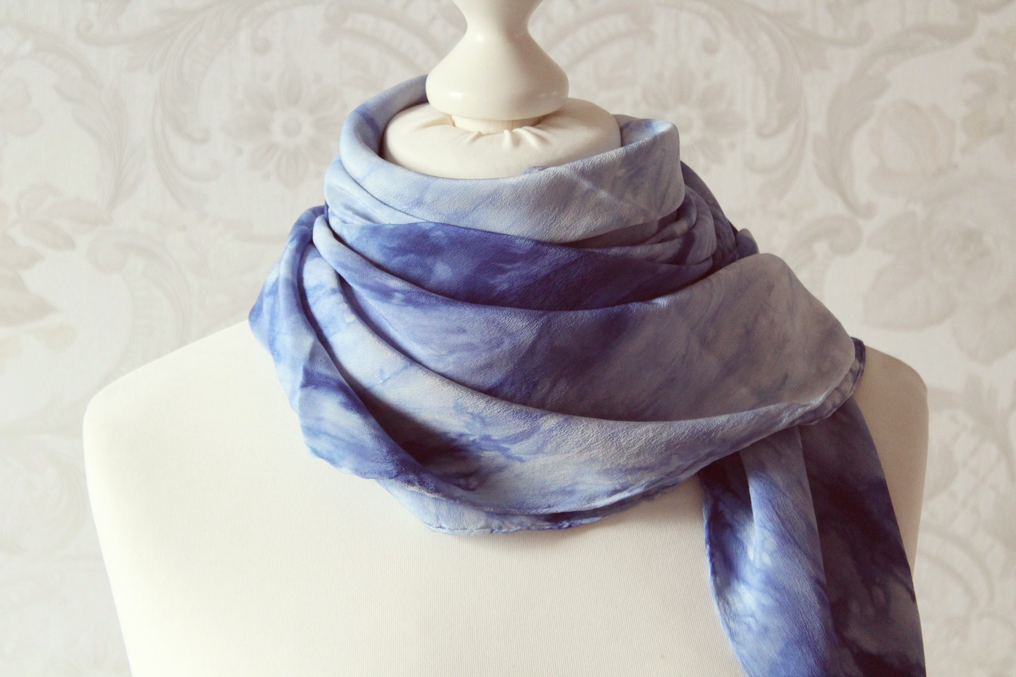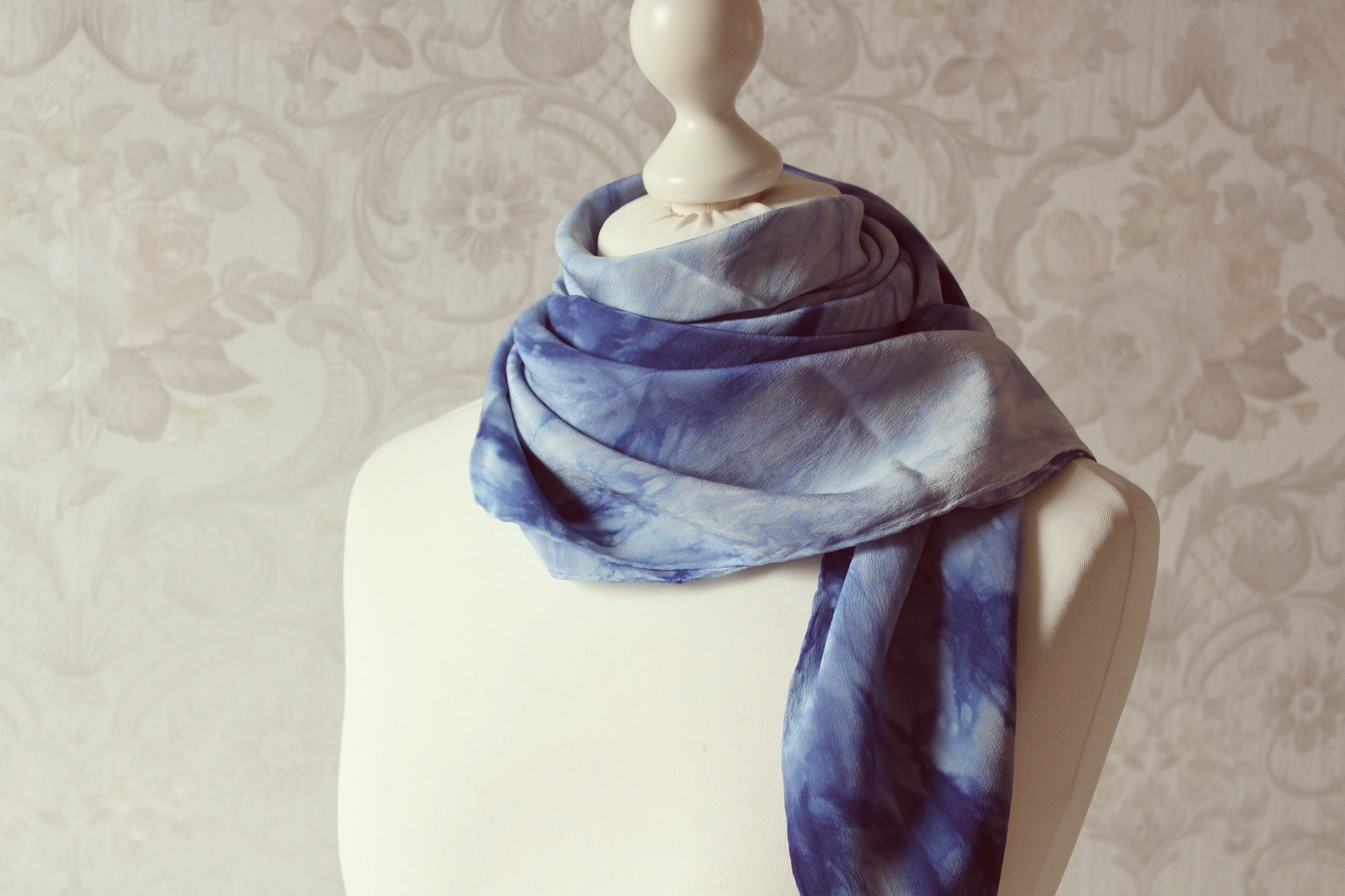 Das Seidentuch ist waschbar bei 30°C, ich würde Handwäsche empfehlen. Feucht bügeln. Ich habe alle Tücher auch schon einmal vorgewaschen, damit keine überschüssigen Farbreste der Seide anhaften.