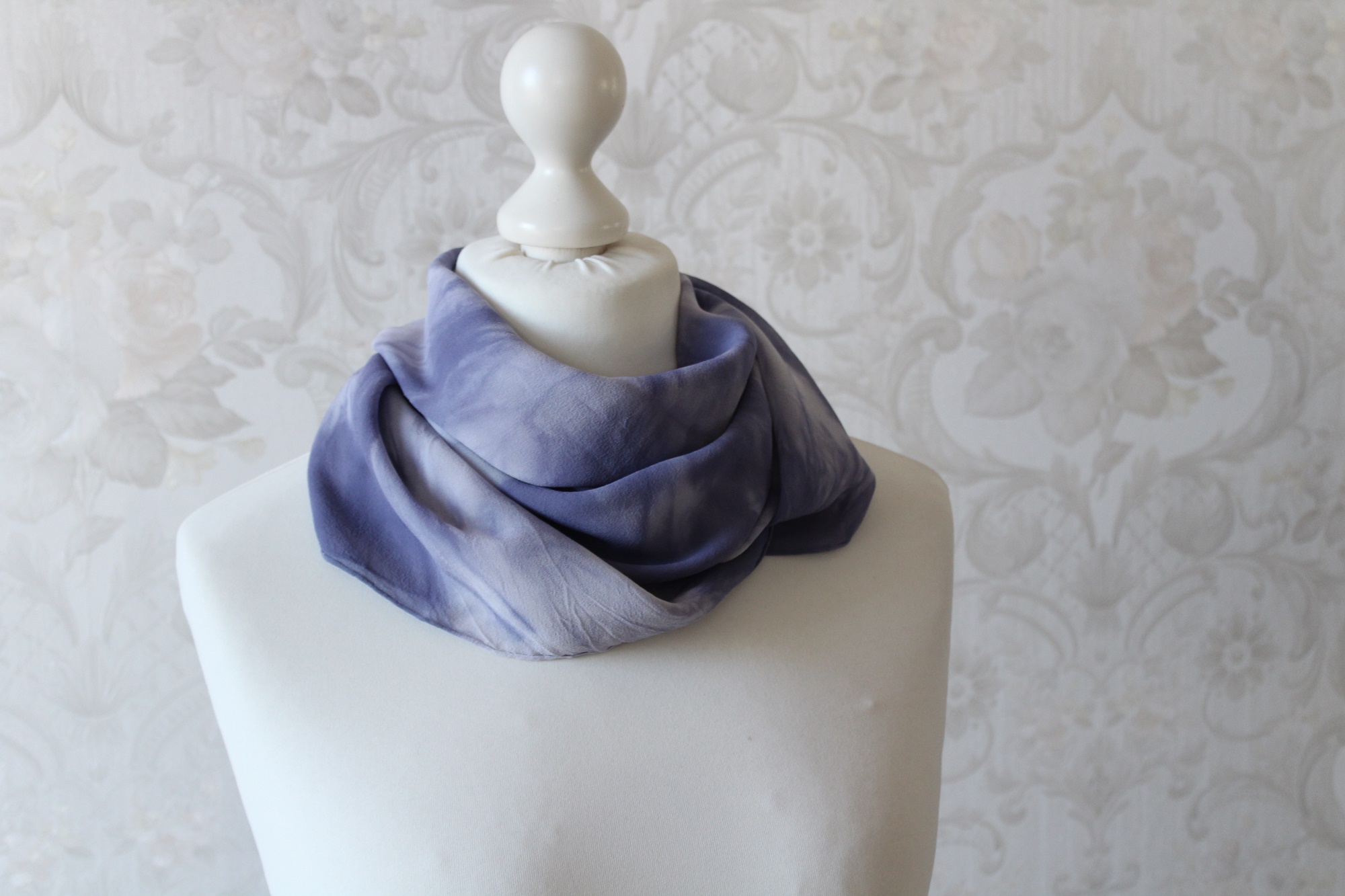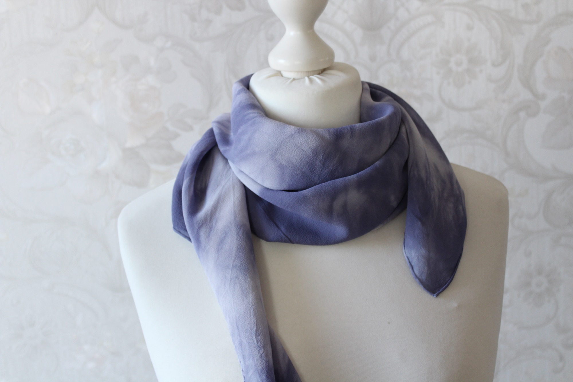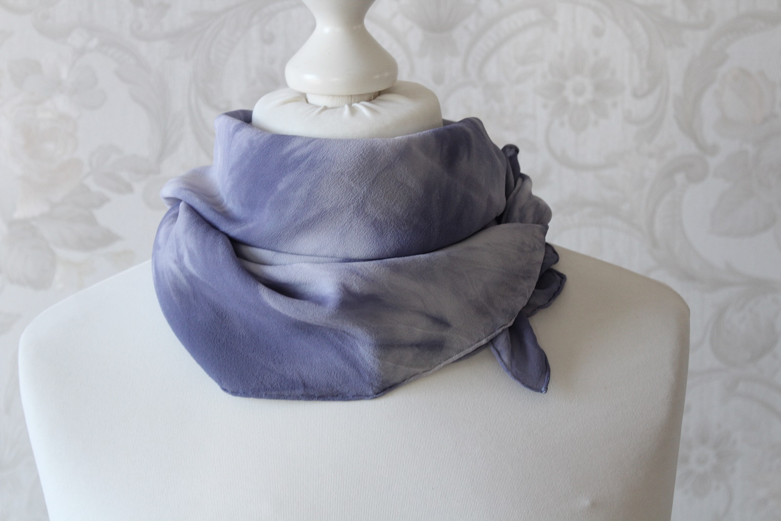 Das Seidentuch ist 80 x 80 cm groß. Material: Crepe de Georgett Seide - diese ist etwas rauer als Ponge Seide, hat eine leicht strukturierte Oberfläche mit Kreppeffekt.