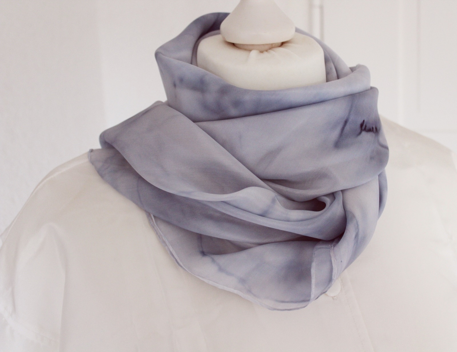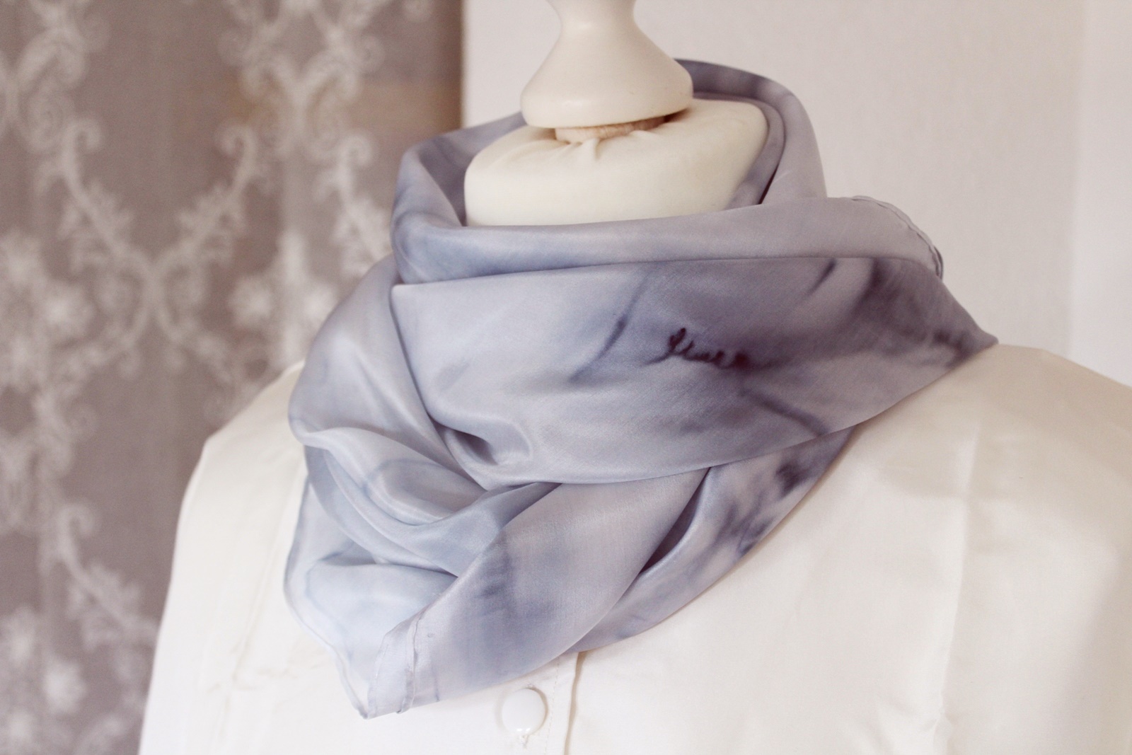Das Seidentuch ist waschbar bei 30°C, ich würde Handwäsche empfehlen. Feucht bügeln. Ich habe alle Tücher auch schon einmal vorgewaschen, damit keine überschüssigen Farbreste der Seide anhaften.