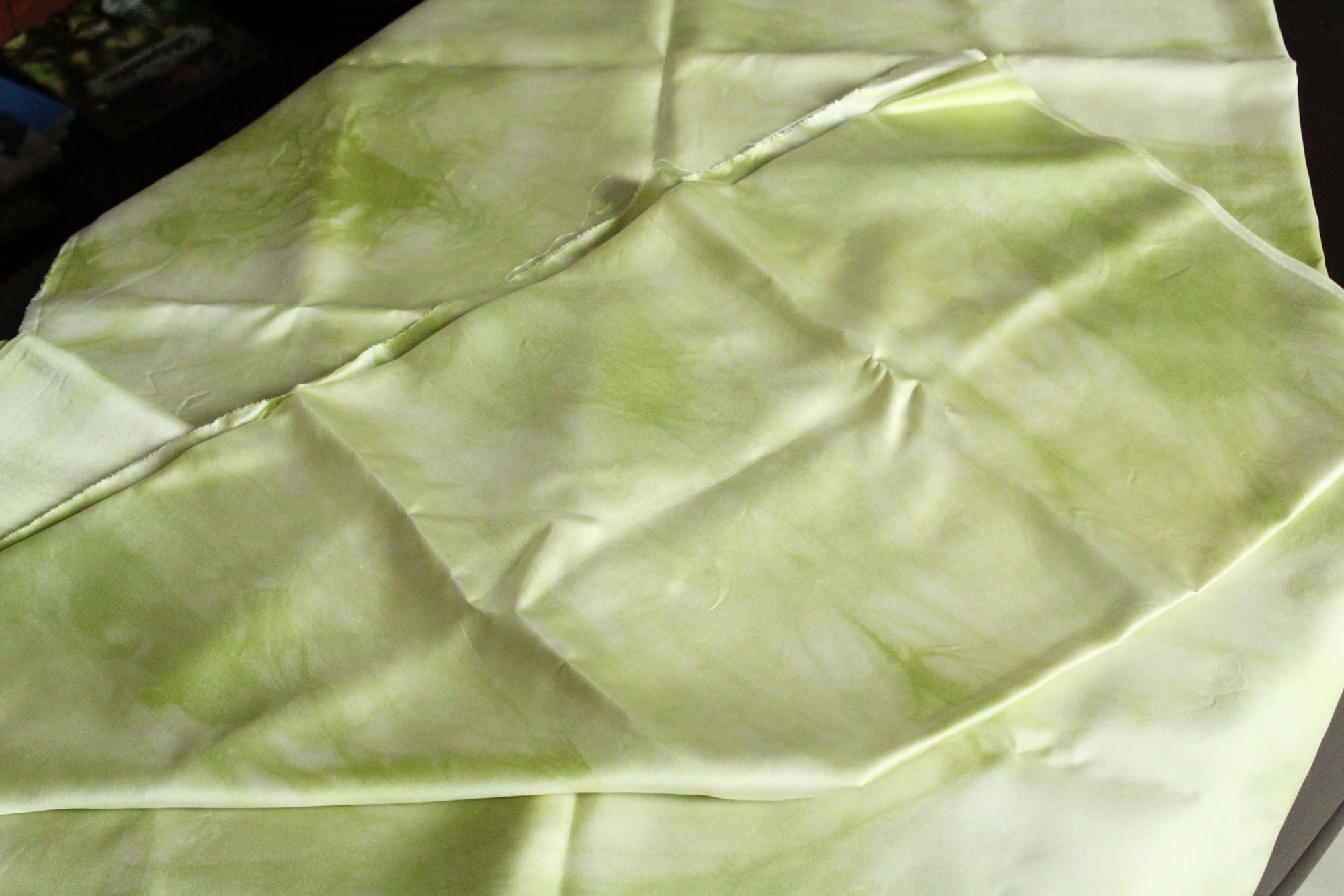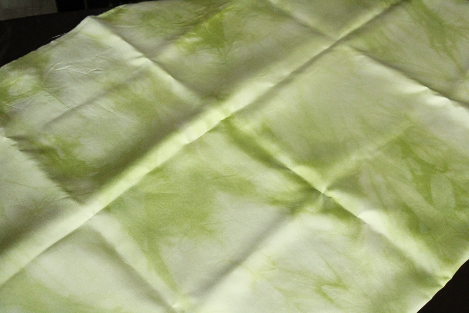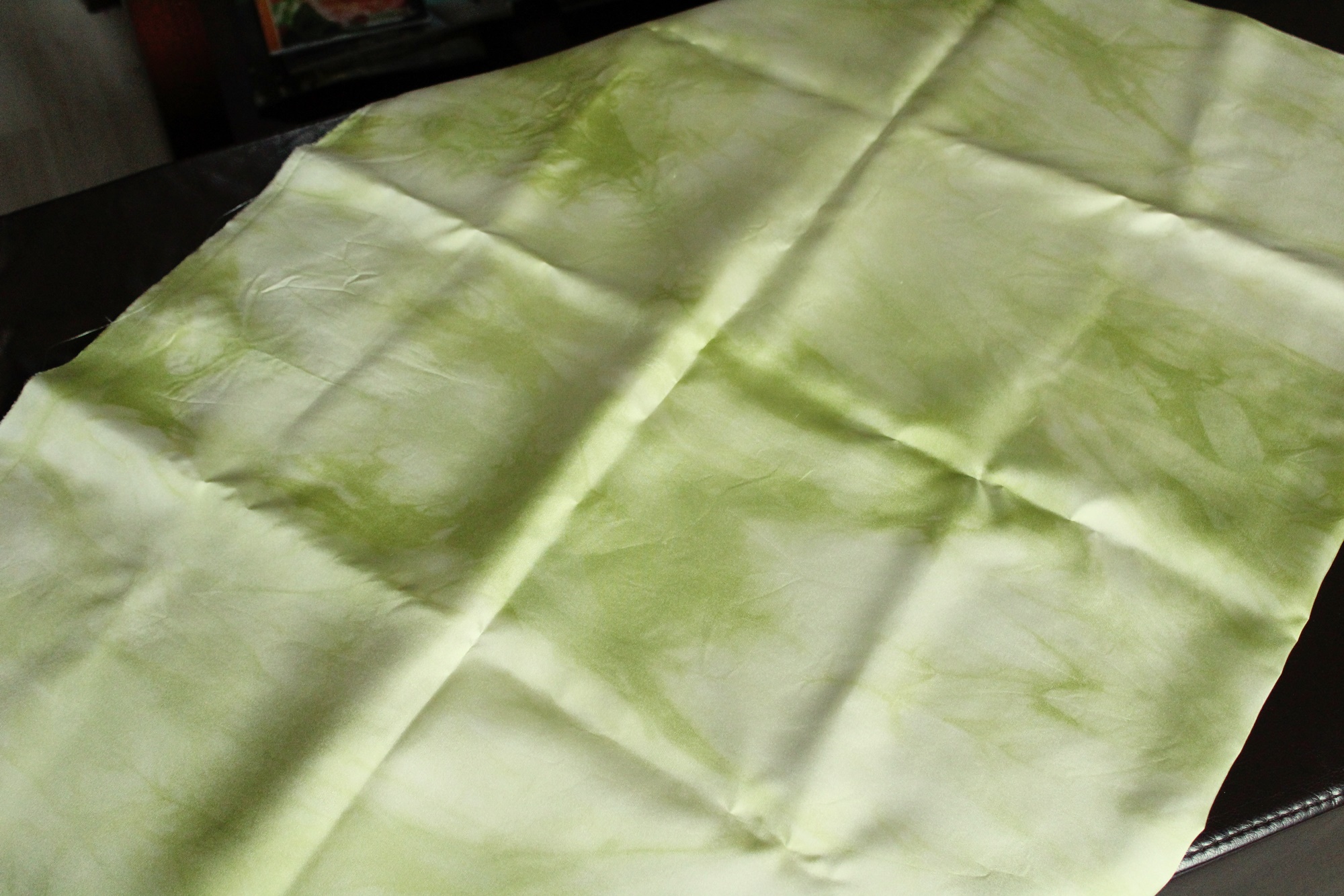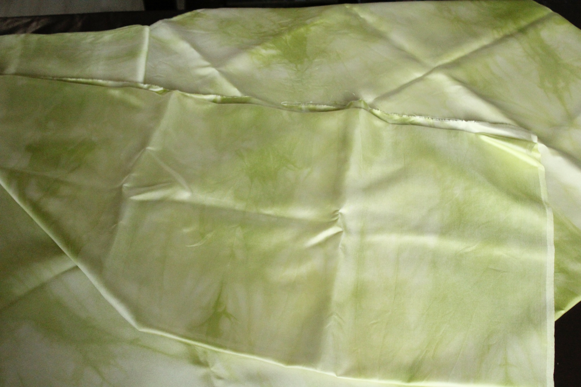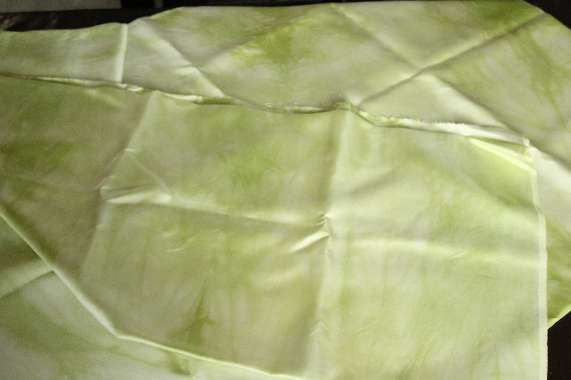 Hellgrüne handbemalte Seide, ein besonderer Stoff zur kreativen Weiterverarbeitung.