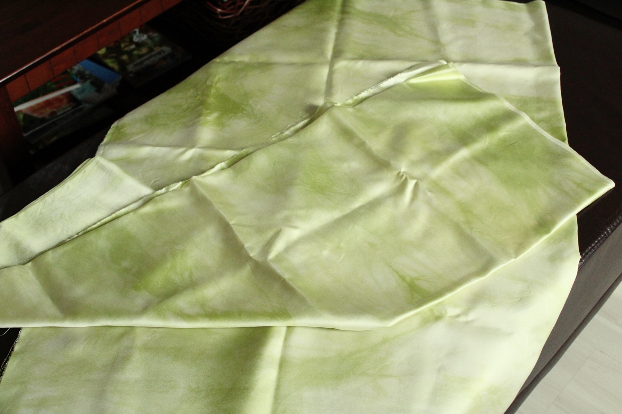 Pflege: der Seidenstoff ist waschbar, ich würde Handwäsche empfehlen. Heiß feucht oder mit Dampf bügeln.