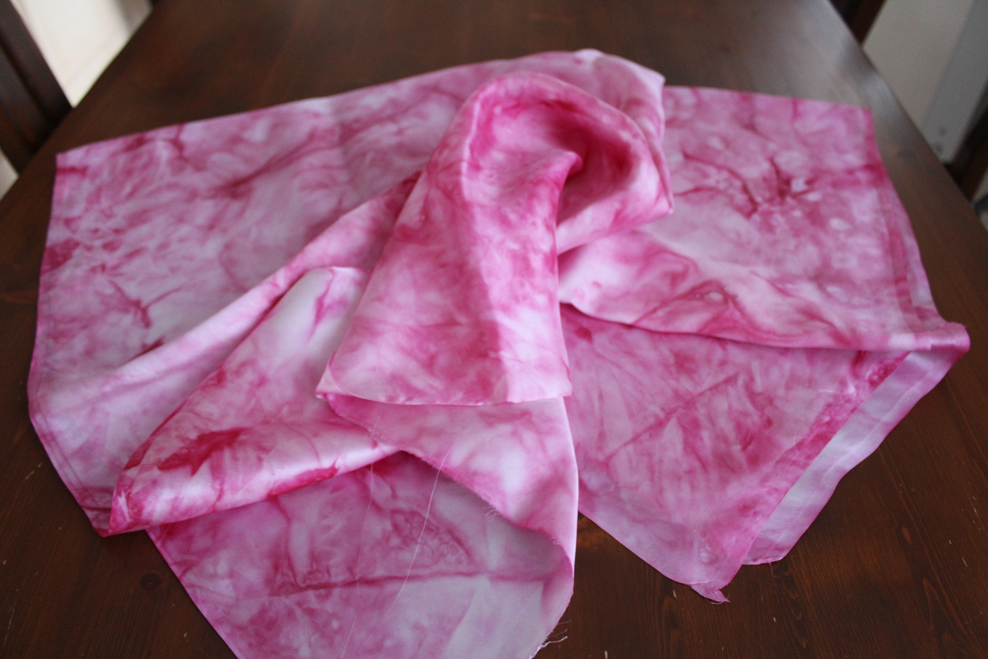 Pflege: der Seidenstoff ist waschbar, ich würde Handwäsche empfehlen. Feucht heiß oder mit Dampf bügeln.