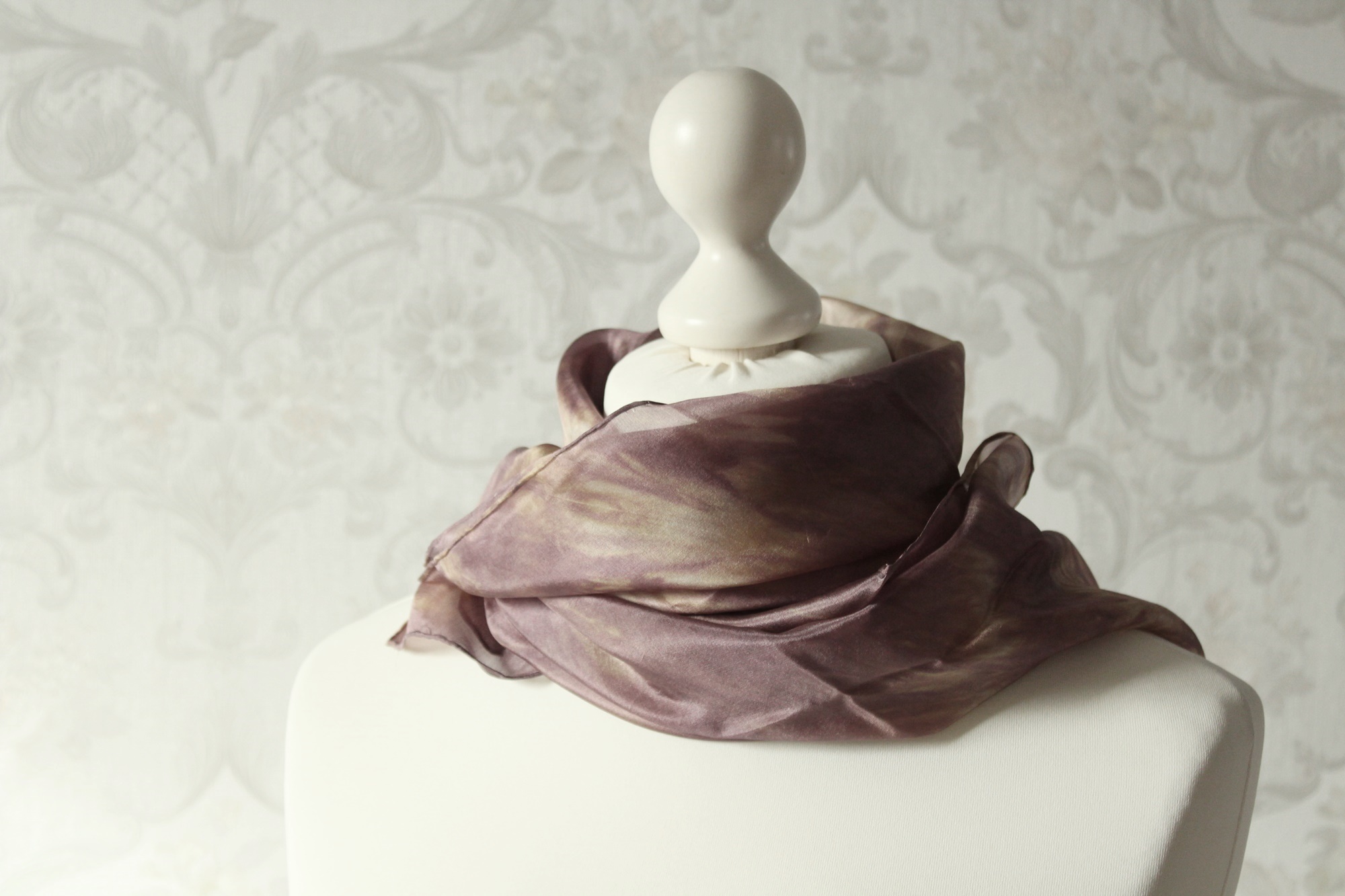 Das Tuch ist waschbar, Handwäsche wird empfohlen. Feucht heiß bügeln. Ich habe es auch schon einmal vorgewaschen, damit keine überschüssigen Farbreste der Seide anhaften.