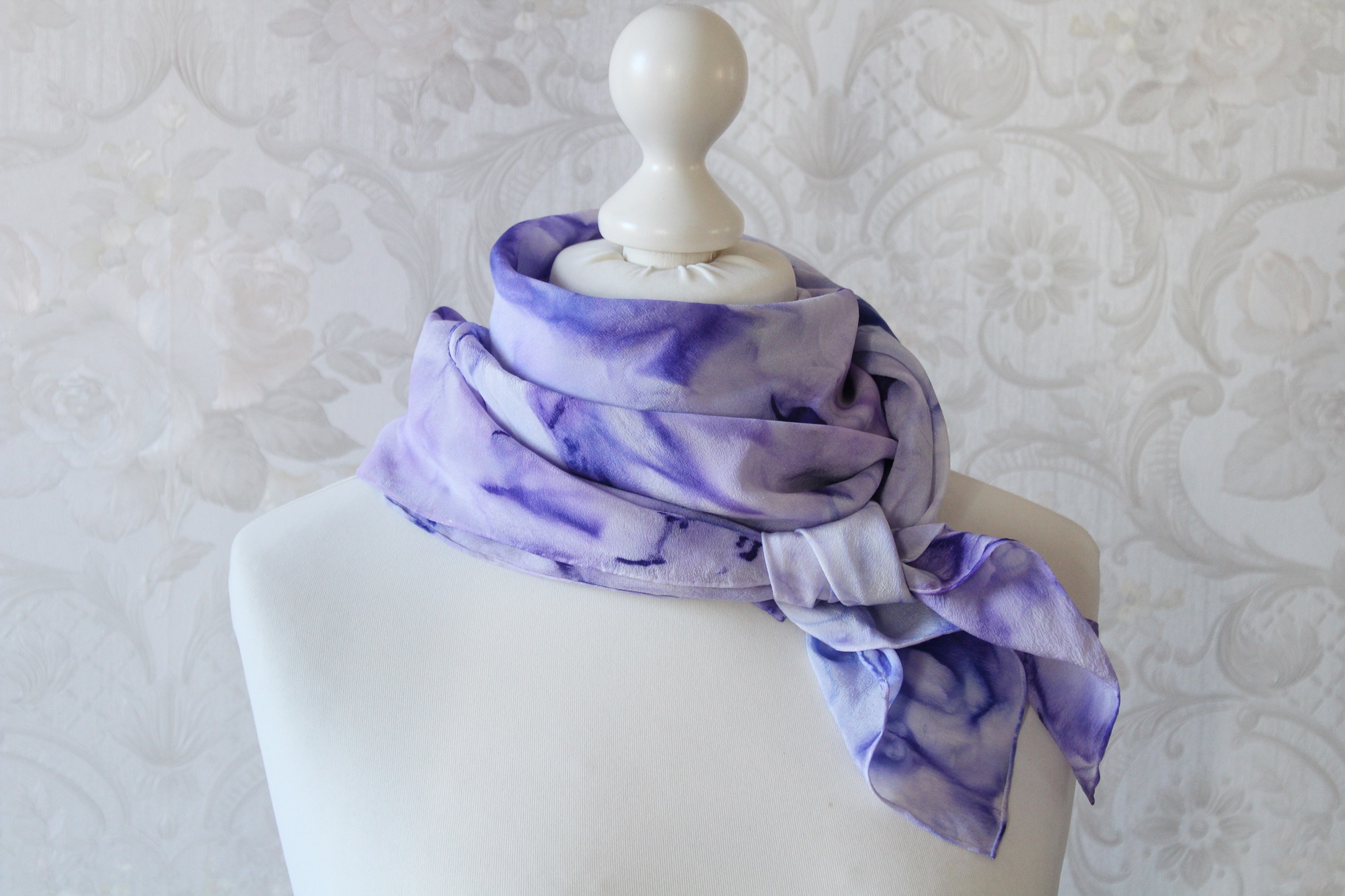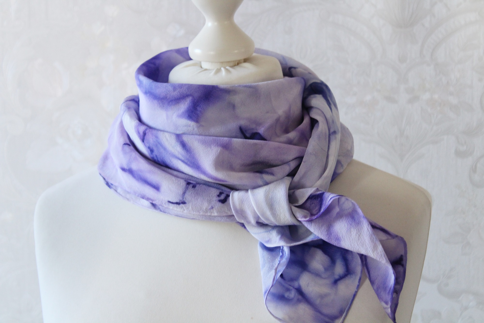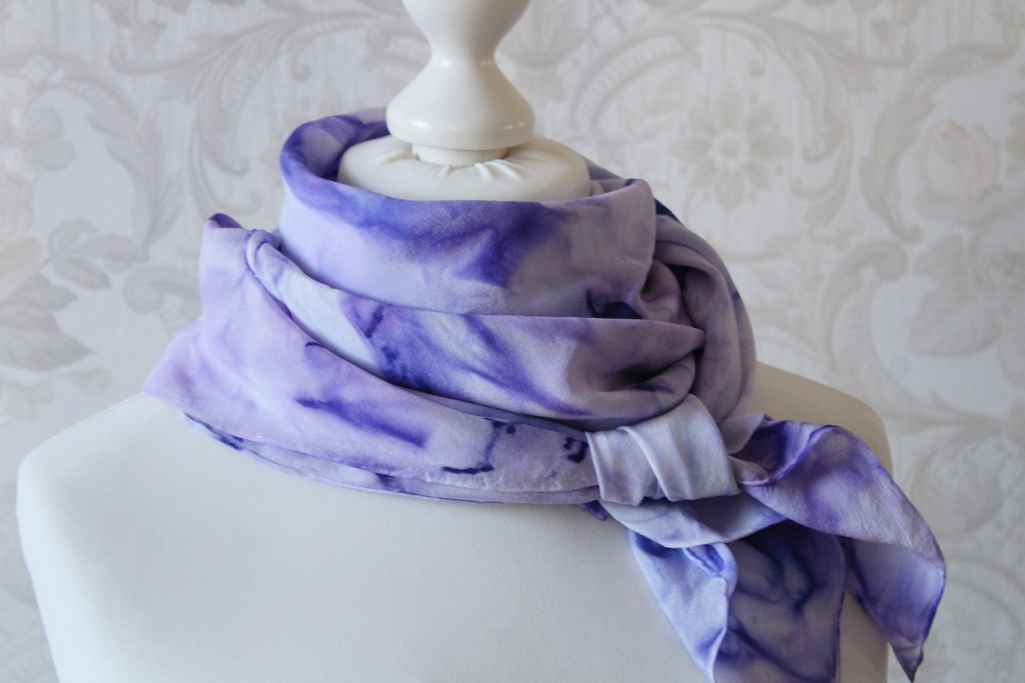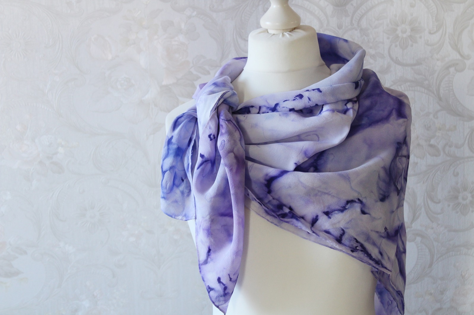 Seidentuch Fantasie in blau und lila, ein handbemaltes Einzelstück. Ein Seidentuch ist auch ein tolles Geschenk für die Frau. (Frau kann sich aber auch mal selbst etwas schenken)