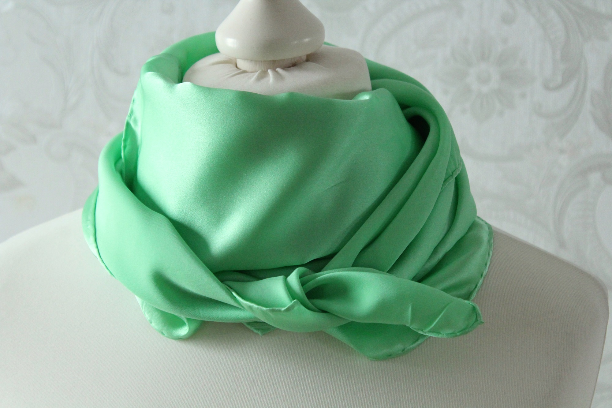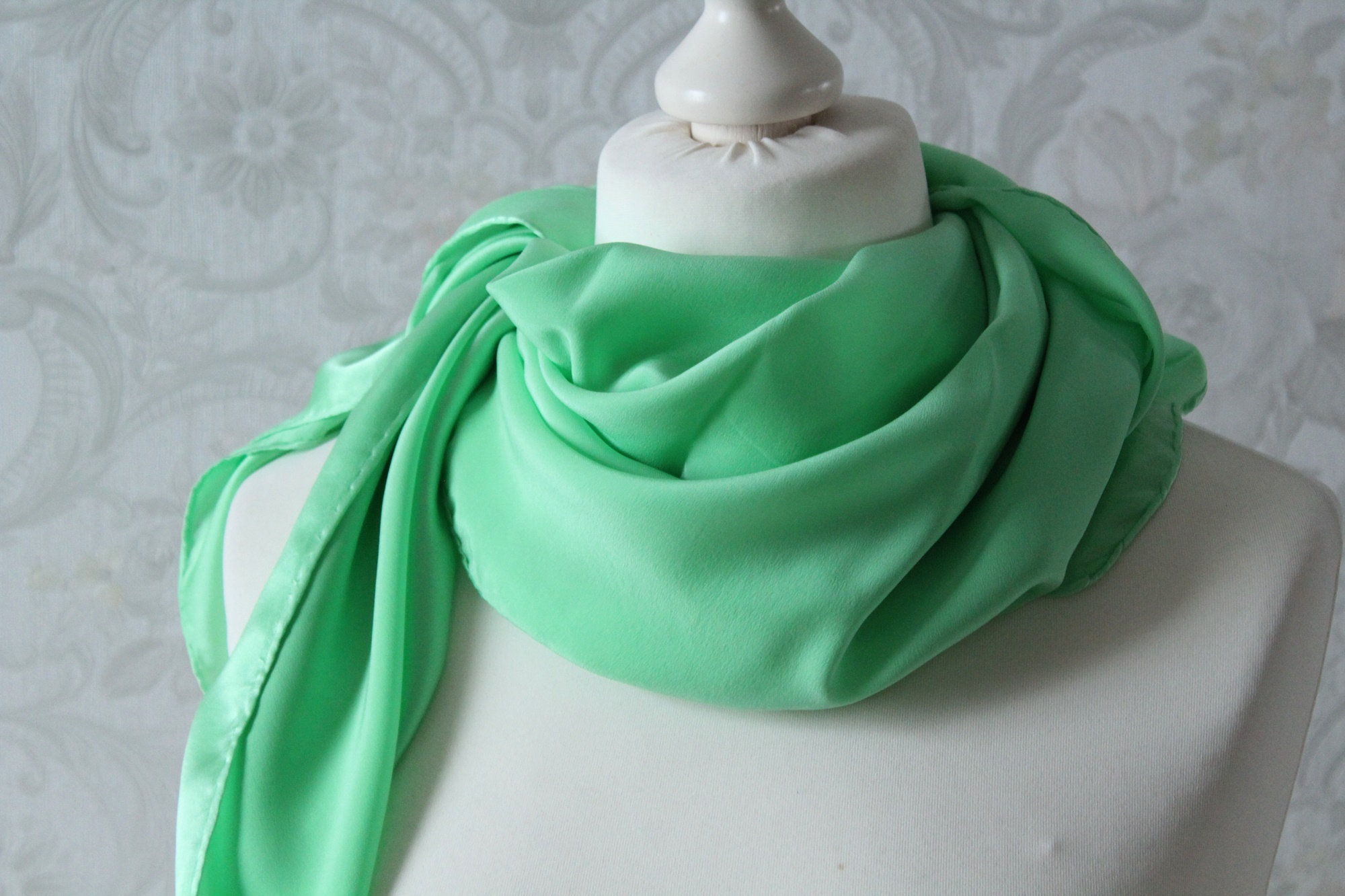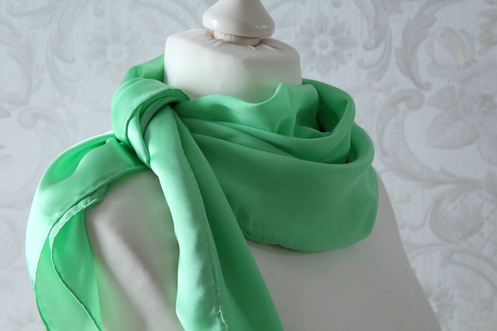 Die frühlingsfrische Farbe dieses handgearbeiteten Tuches passt fast immer. Egal ob noch jung an Jahren oder schon etwas reifer, ob auf heller oder dunkler Kleidung, im Frühling, Sommer oder Herbst, das Seidentuch ist ein echter Allrounder.