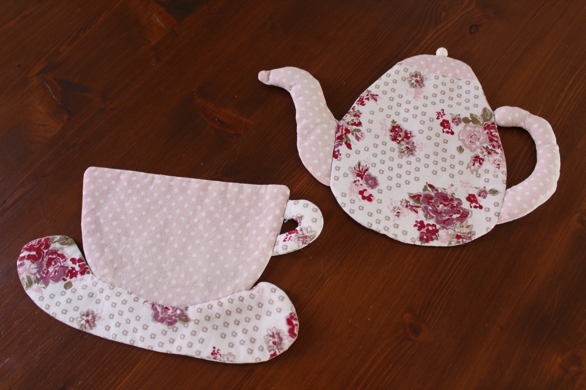 Untersetzer Set Tasse und Kanne genäht Handarbeit Einzelstück