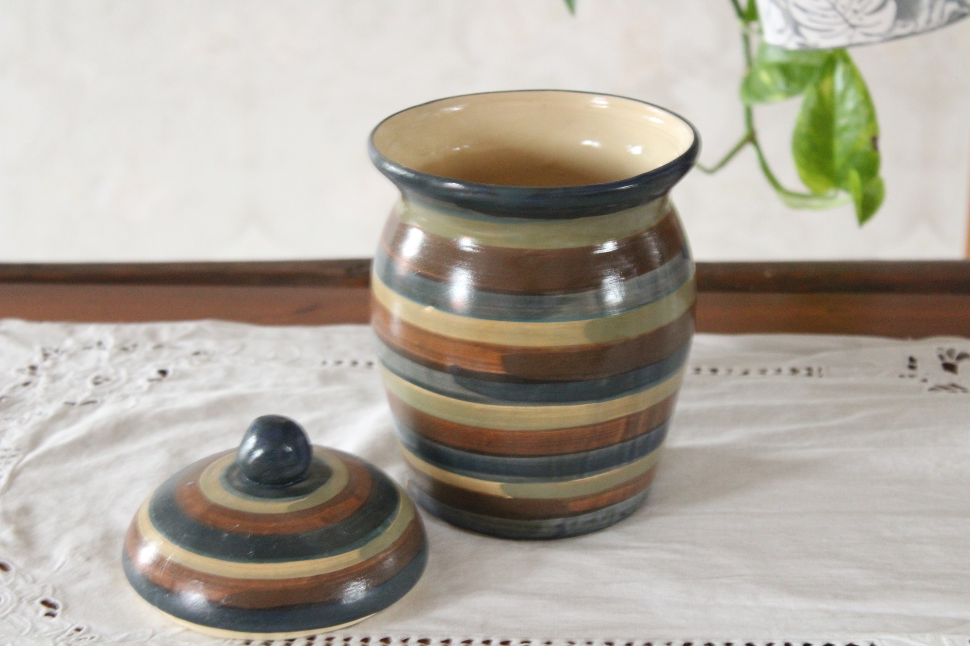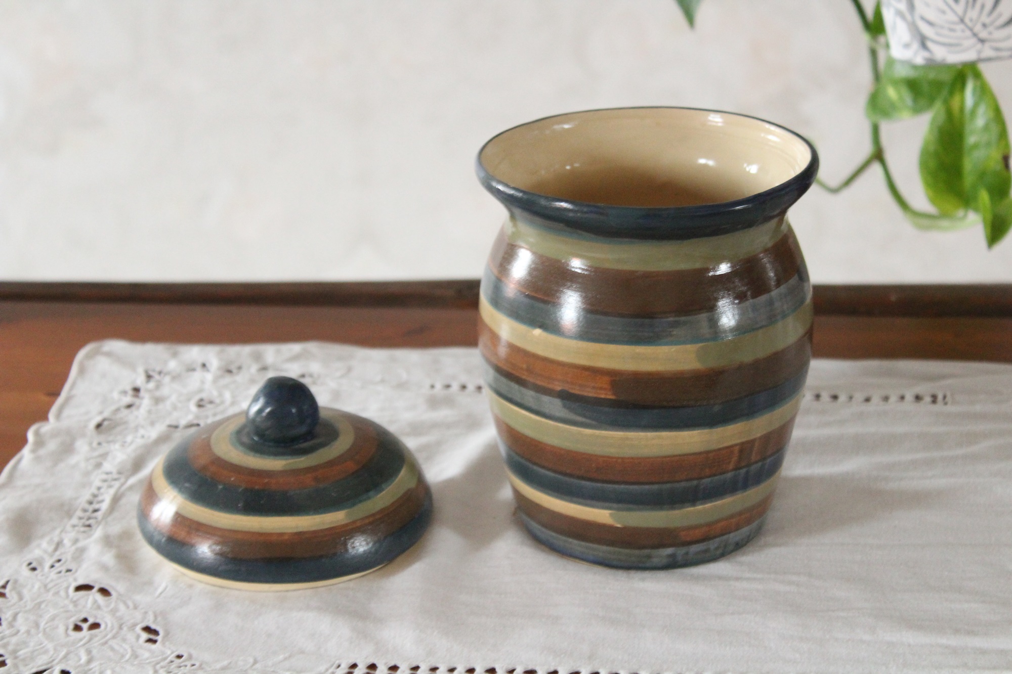 Mit diesem Tontopf hat man einen nützlichen Helfer und gleichzeitig eine wunderschöne Dekoration für die Küche. Natürlich ist dieser Vorratstopf auch ein wunderbares Geschenk, vielleicht zum Geburtstag, Hochzeit, Einzug oder Weihnachten.
